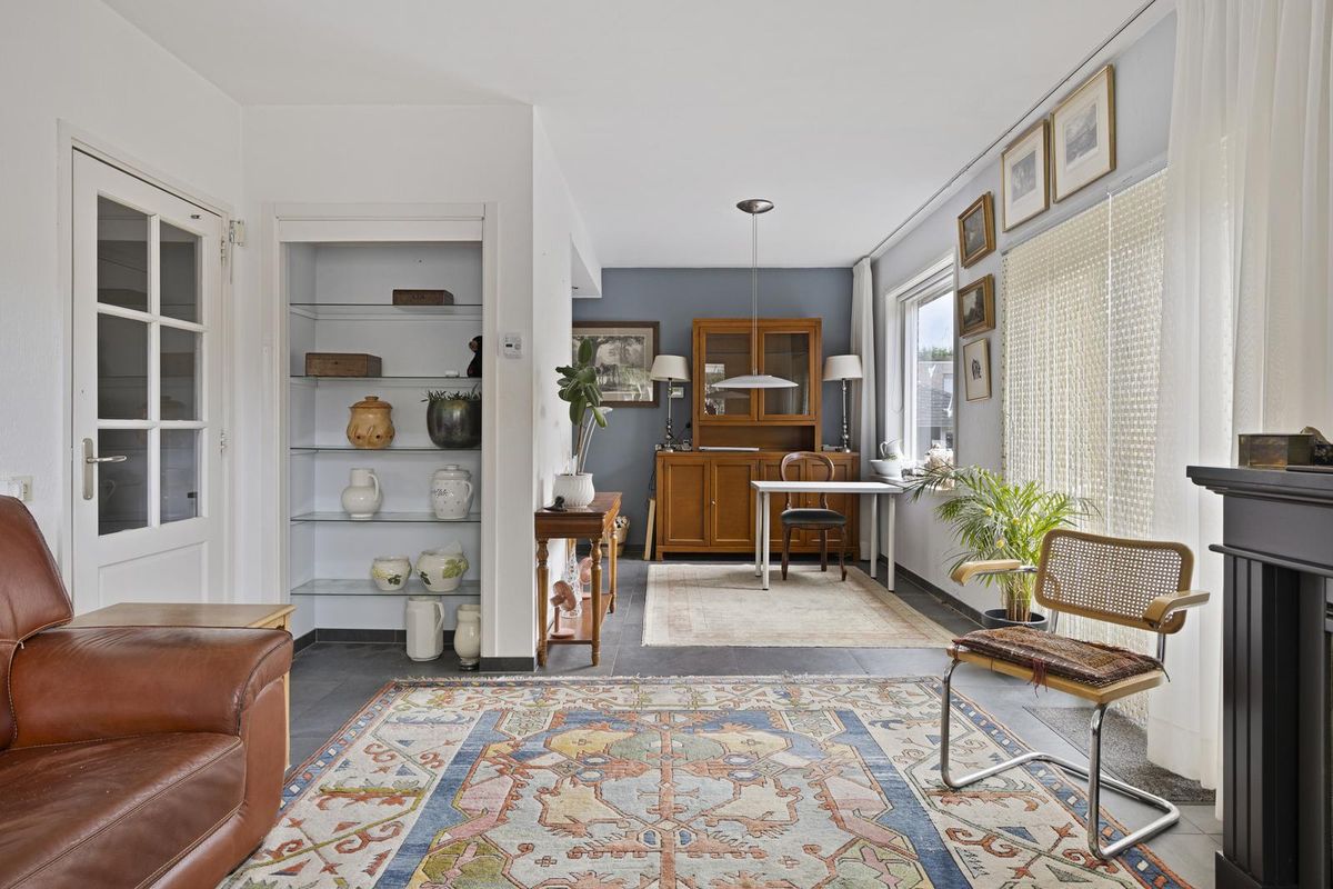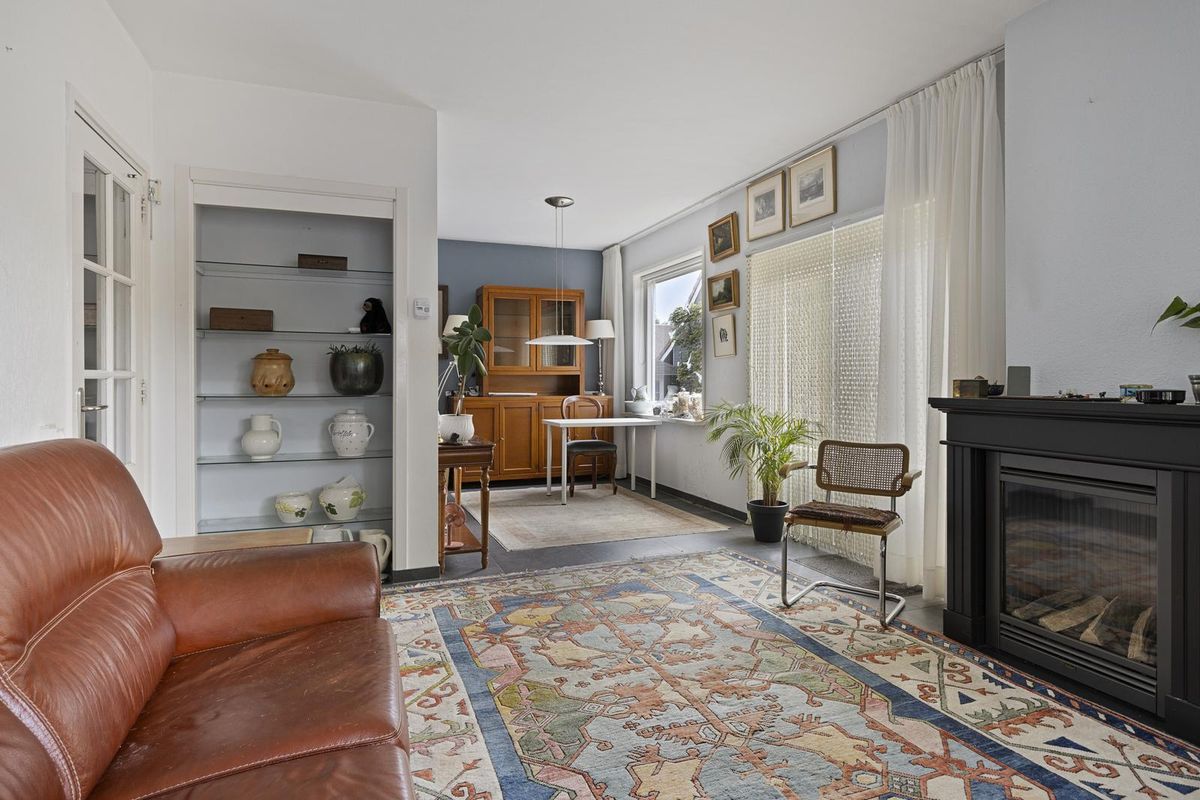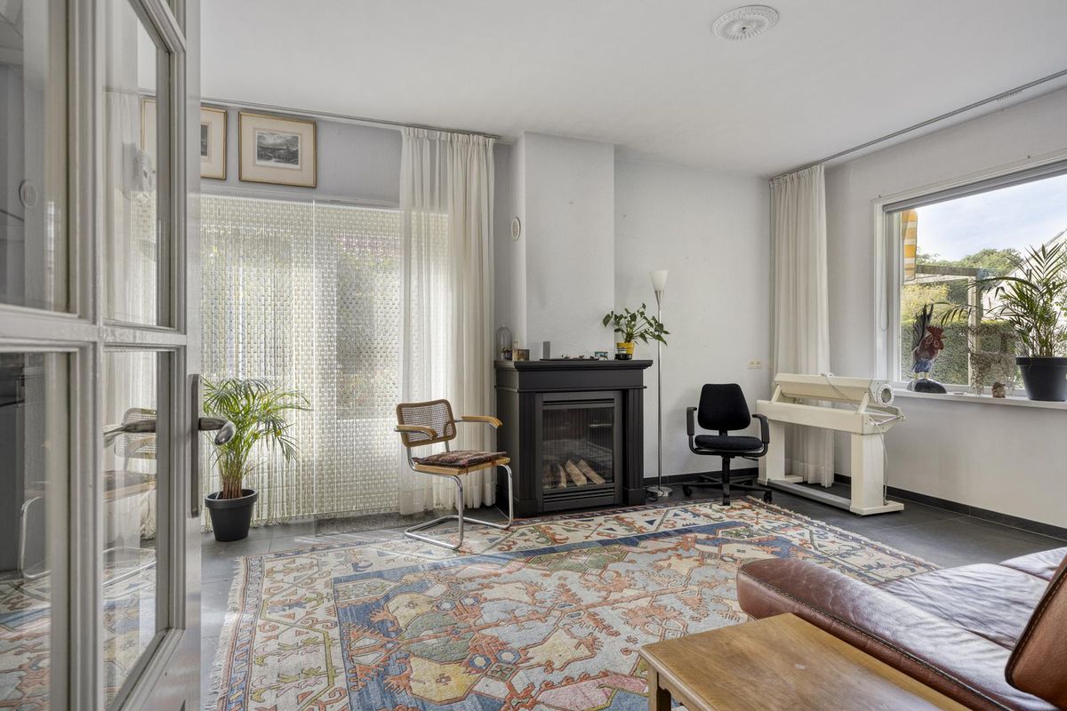 - sfeervolle woonkamer met gashaard en openslaande deuren naar de veranda;