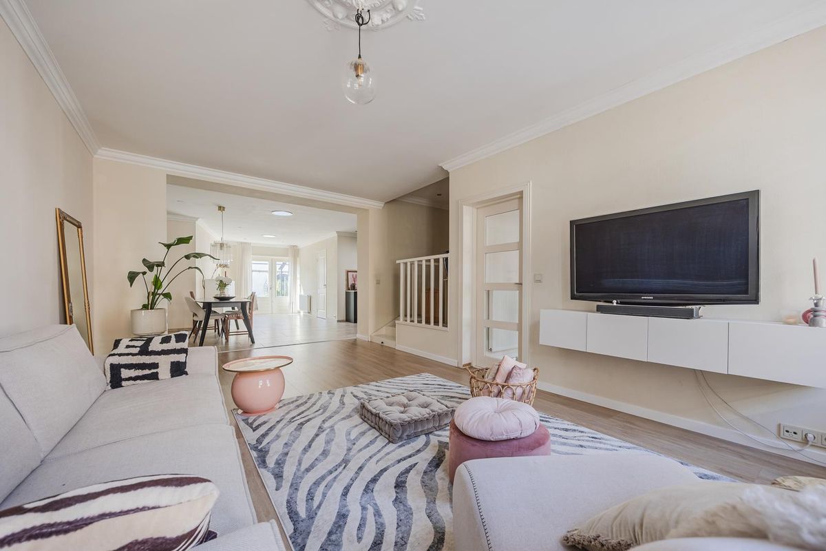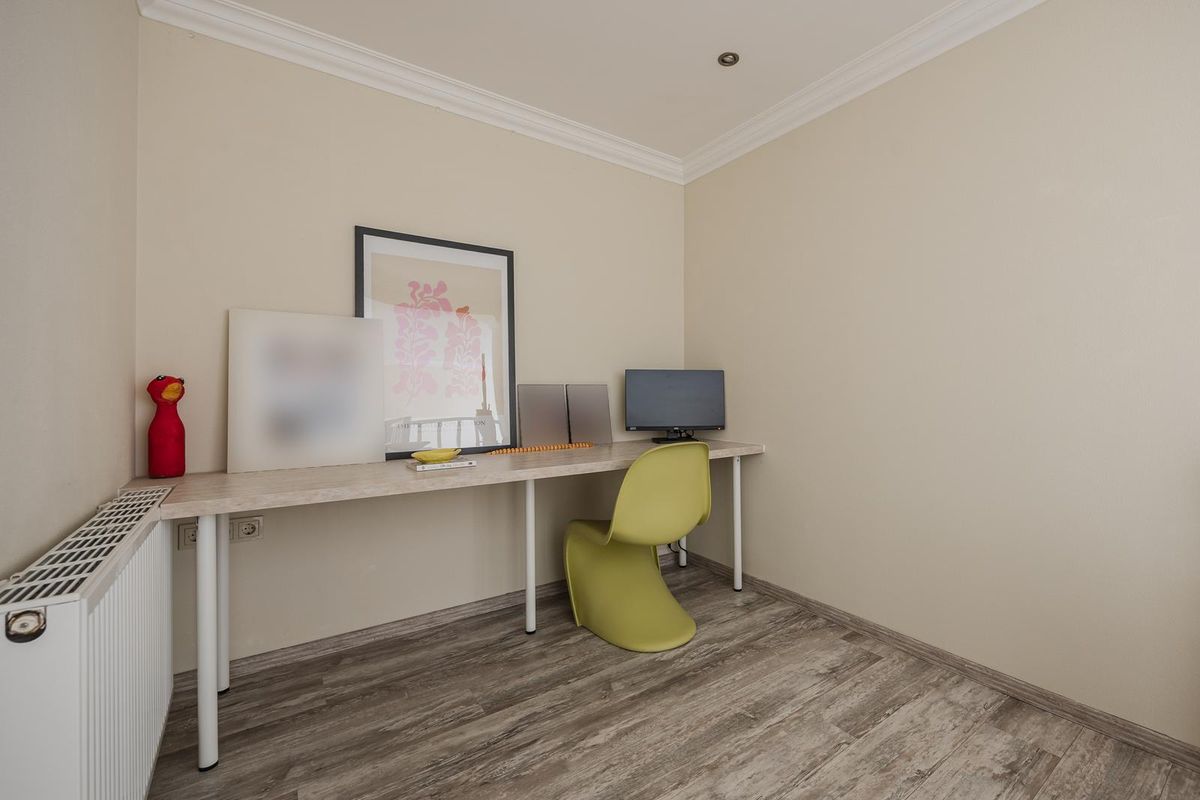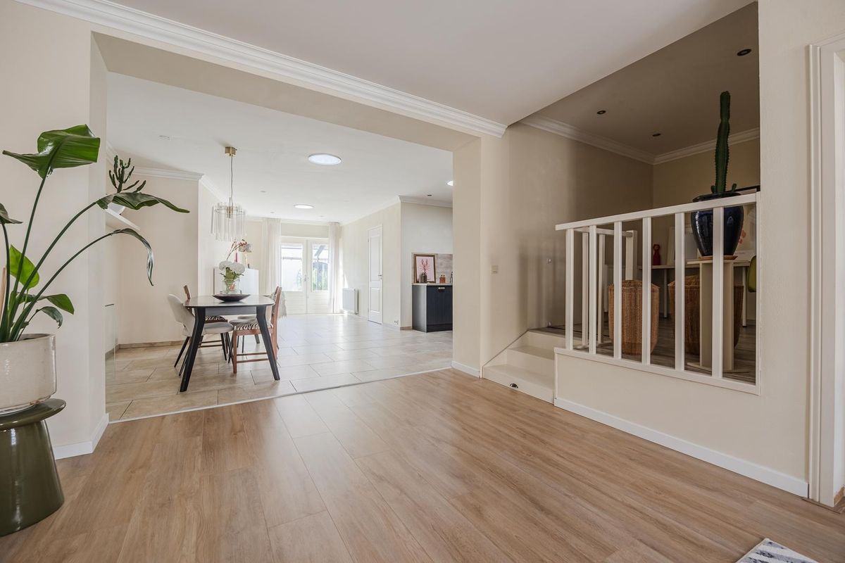 De ruime woonkamer is voorzien van een laminaatvloer en is in twee delen gedeeld. Daarnaast beschikt de woonkamer over een apart hoekje met een verhoging waar je ideaal een werkplek kunt creëren.