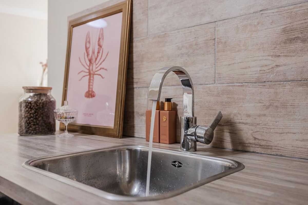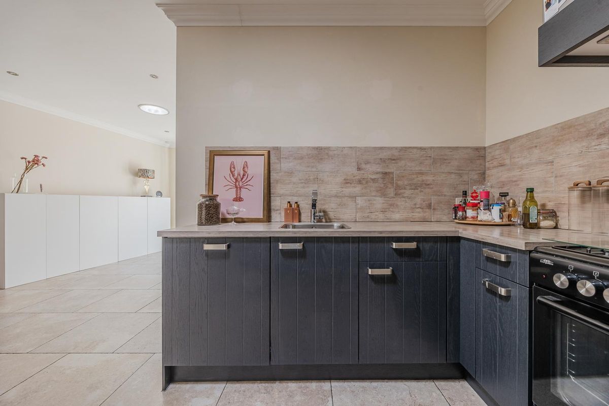 De heerlijke leefkeuken met tegelvloer beschik over 3 solartubes die voor extra daglicht zorgen. De keuken is voorzien van inbouwapparatuur: 5 pits gaskookplaat, oven, afzuigschouw, vaatwasser, koelkast en een vriezer.