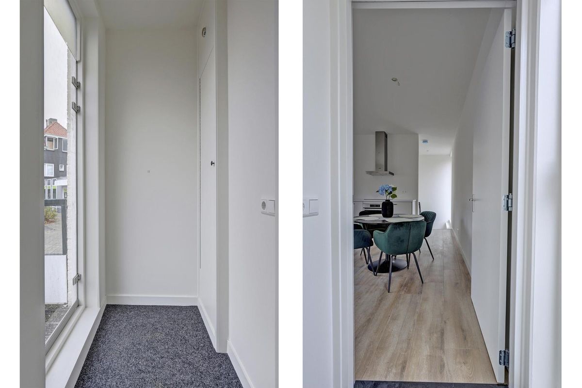 Via de nette entree kom je binnen in het appartement. De hal geeft toegang tot de lichte woonkamer met open keuken. Grote raampartijen zorgen hier voor veel daglicht en een prettige verbinding met de buitenruimte.