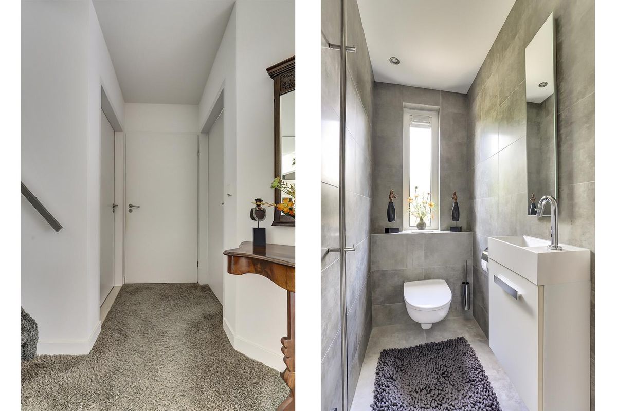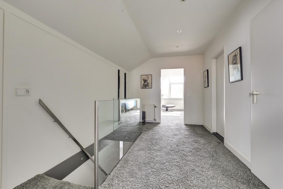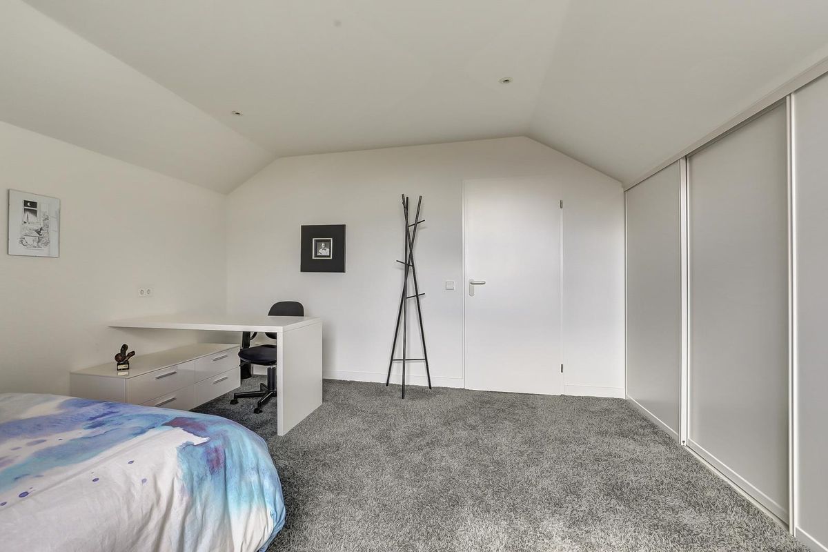 De royaal bemeten overloop leidt naar twee grote slaapkamers met prachtige ingebouwde vaste kasten, beide voorzien van lichte grijze vloerbedekking en neutrale wandafwerking. De kamers zijn ruim en hebben veel daglicht dankzij de grote ramen en dakvensters. Op deze verdieping bevindt zich tevens een tweede badkamer, uitgevoerd met een moderne douche, een wastafelmeubel in houtaccent en lichte wandtegels. Ook is hier een tweede toilet aanwezig. Onder de schuine kap zijn meerdere handige en zeer ruime bergruimtes gecreëerd.