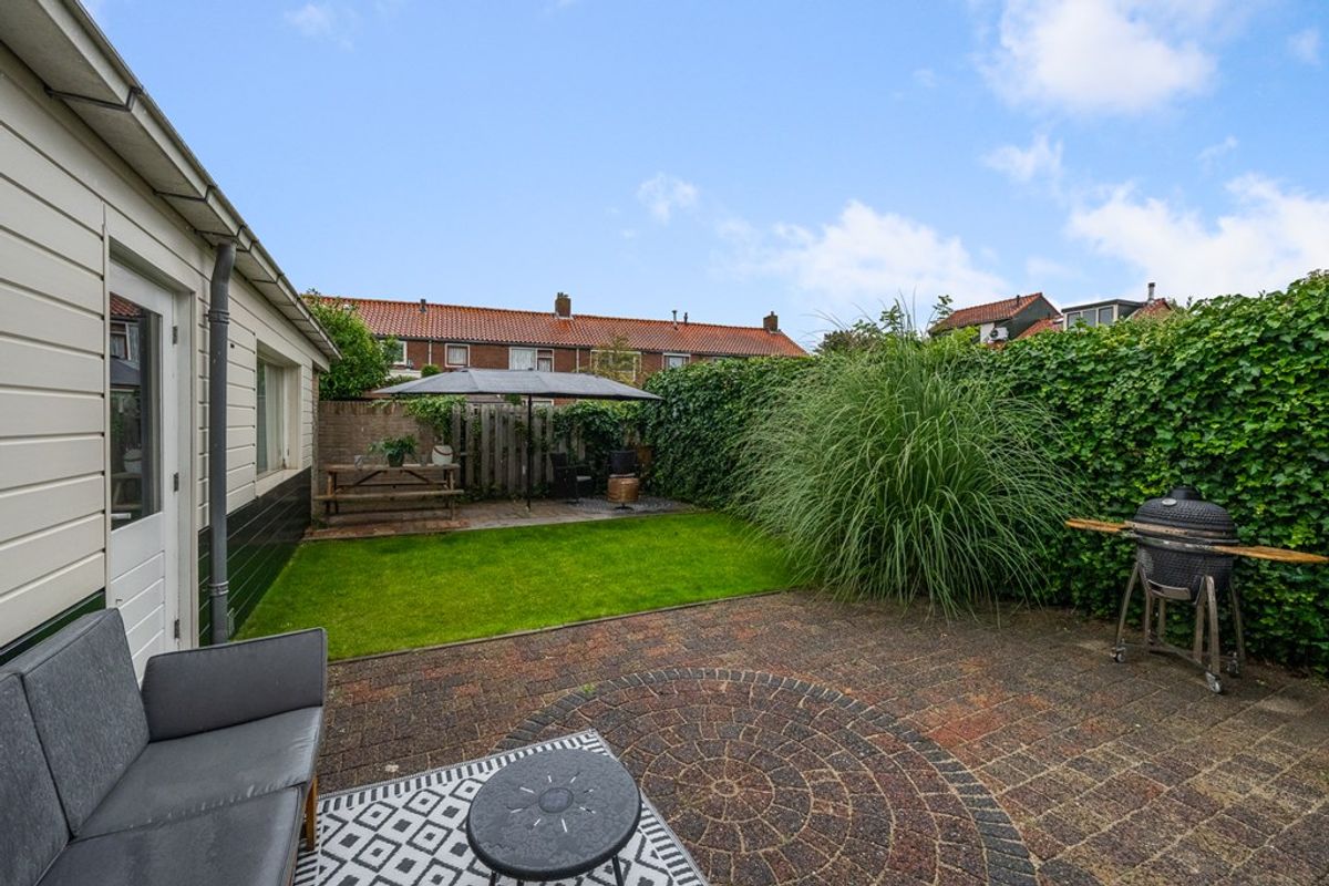 De achtertuin ligt op het oosten en is verzorgd aangelegd met gras, beplanting en bestrating. Op het terras bij de schuifpui geniet je in de ochtend van je koffie en in de middag of avond van een borrel met vrienden. Aan de voorzijde heb je bovendien een eigen oprit met plek voor twee auto’s.