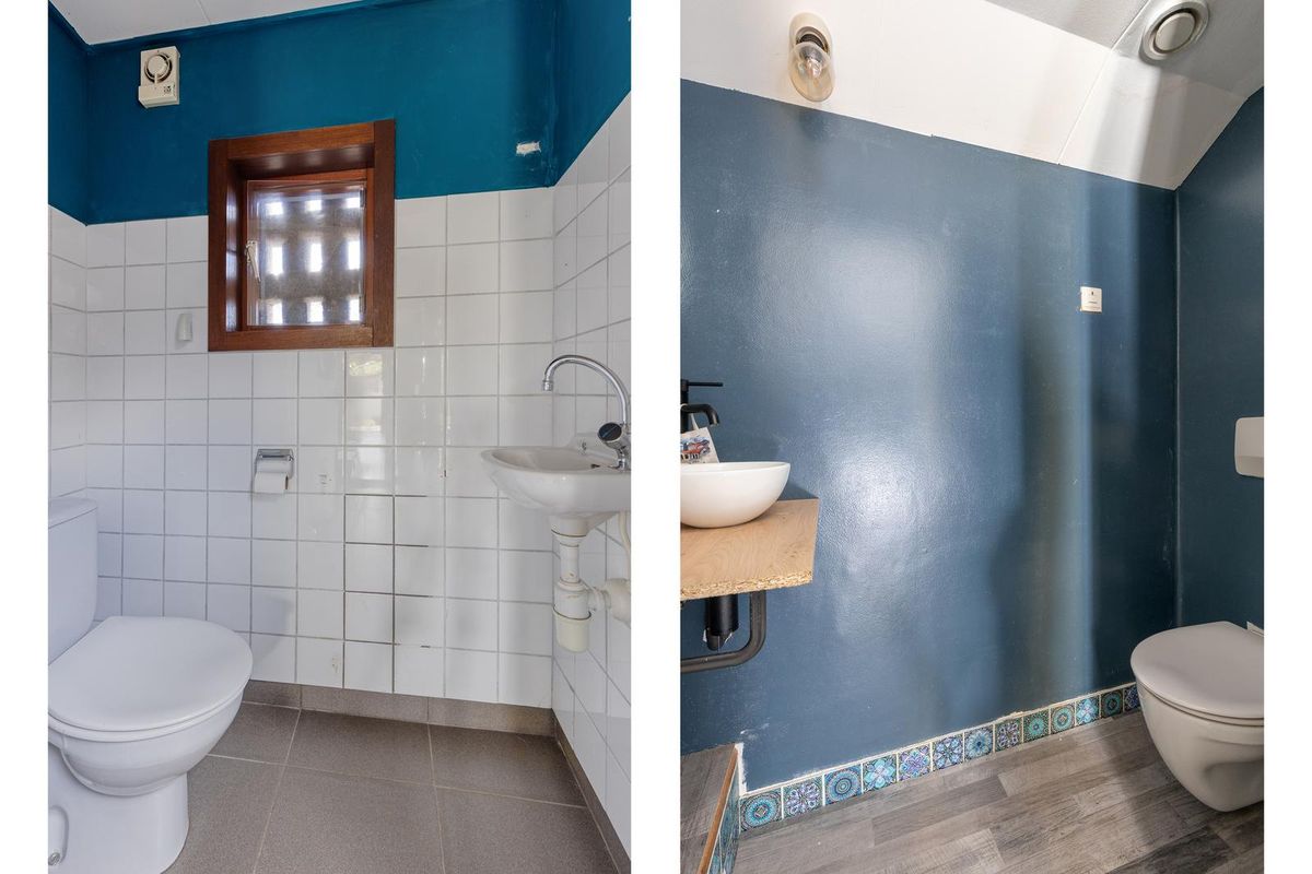 Het toilet is afgewerkt met een laminaatvloer en gipsplaten plafond en voorzien van een hangend closet, fonteintje en mechanische ventilatie.