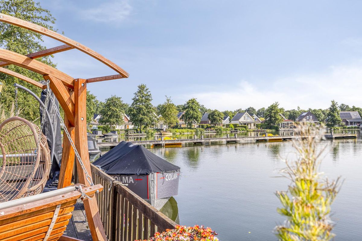 Mooi aangelegde en ruime tuin met privacy, meerdere terrassen en vrij uitzicht. Aan de achterzijde aanlegsteiger met sloep. Aan de voorzijde parkeergelegenheid voor 2 auto's op eigen terrein.