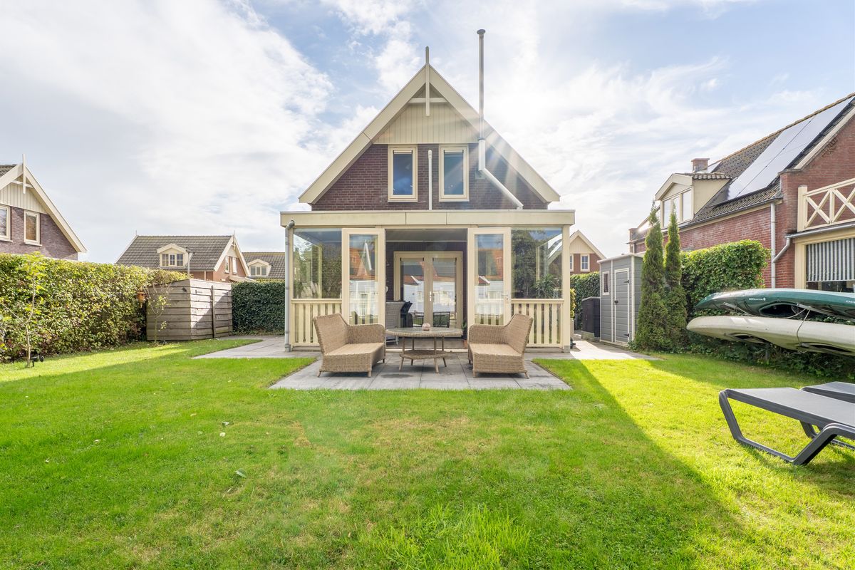De waanzinnige achtertuin ligt rondom de woning en direct aan het water, met diverse mogelijkheden om gezellige zitplekjes te creëren en via de eigen steiger een bootje aan te meren.