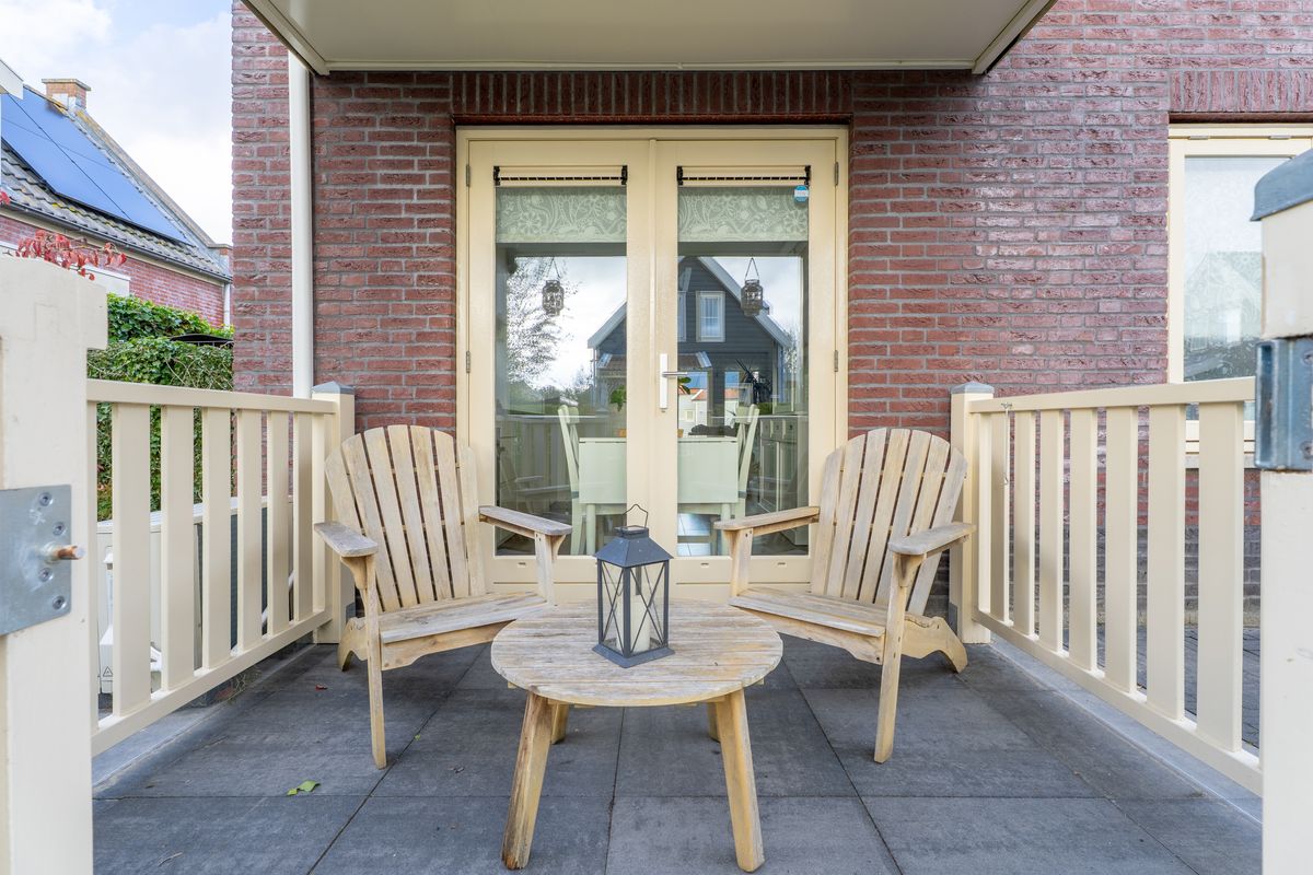 Via de openslaande deuren stap je zo de sfeervolle veranda in. Deze is volledig afgesloten en daardoor het hele jaar door te gebruiken als een verlengstuk van de woonkamer. De houtkachel zorgt in de veranda voor een aangename temperatuur.