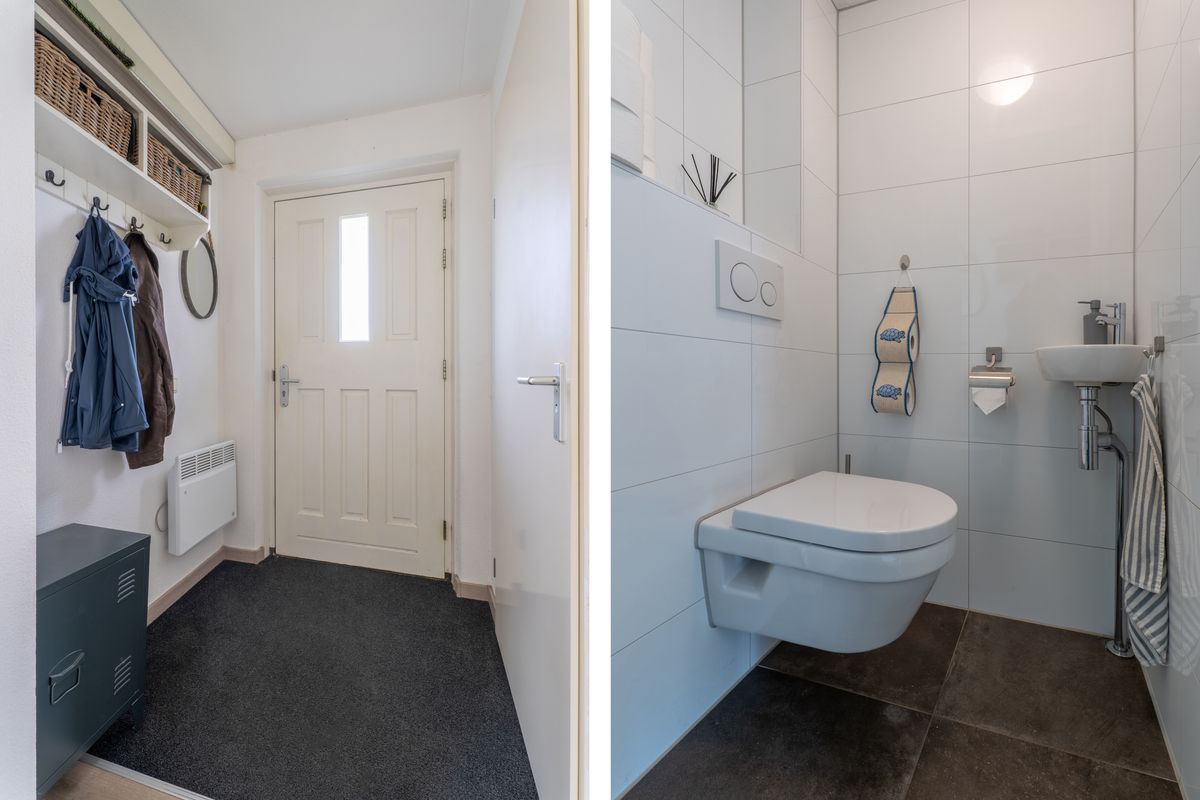 Via de entree aan de zijkant van de woning bereik je de hal met toegang tot de meterkast, het toilet en de berging met technische opstelling.