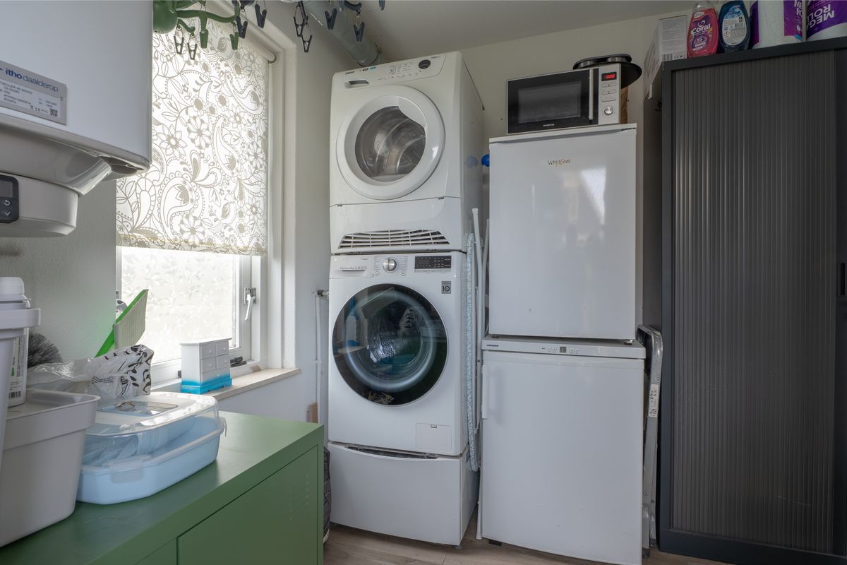 In de praktische berging vindt je de aansluiting voor wasmachine- en droger, de elektrische boiler (80L Itho Daalderop) en ruimte voor voldoende opbergmogelijkheden. De woning is sinds kort volledig van het gas af wat bijdraagt aan het duurzame en energiezuinige karakter van de woning.