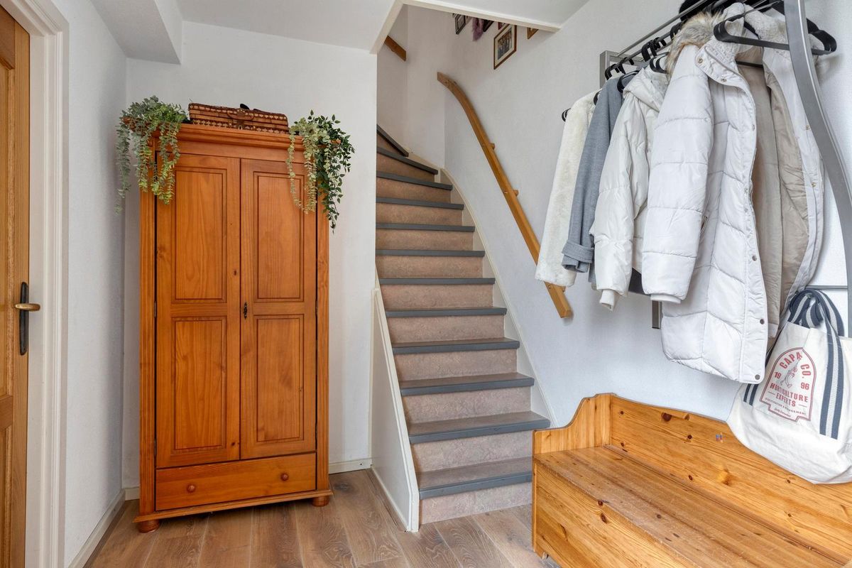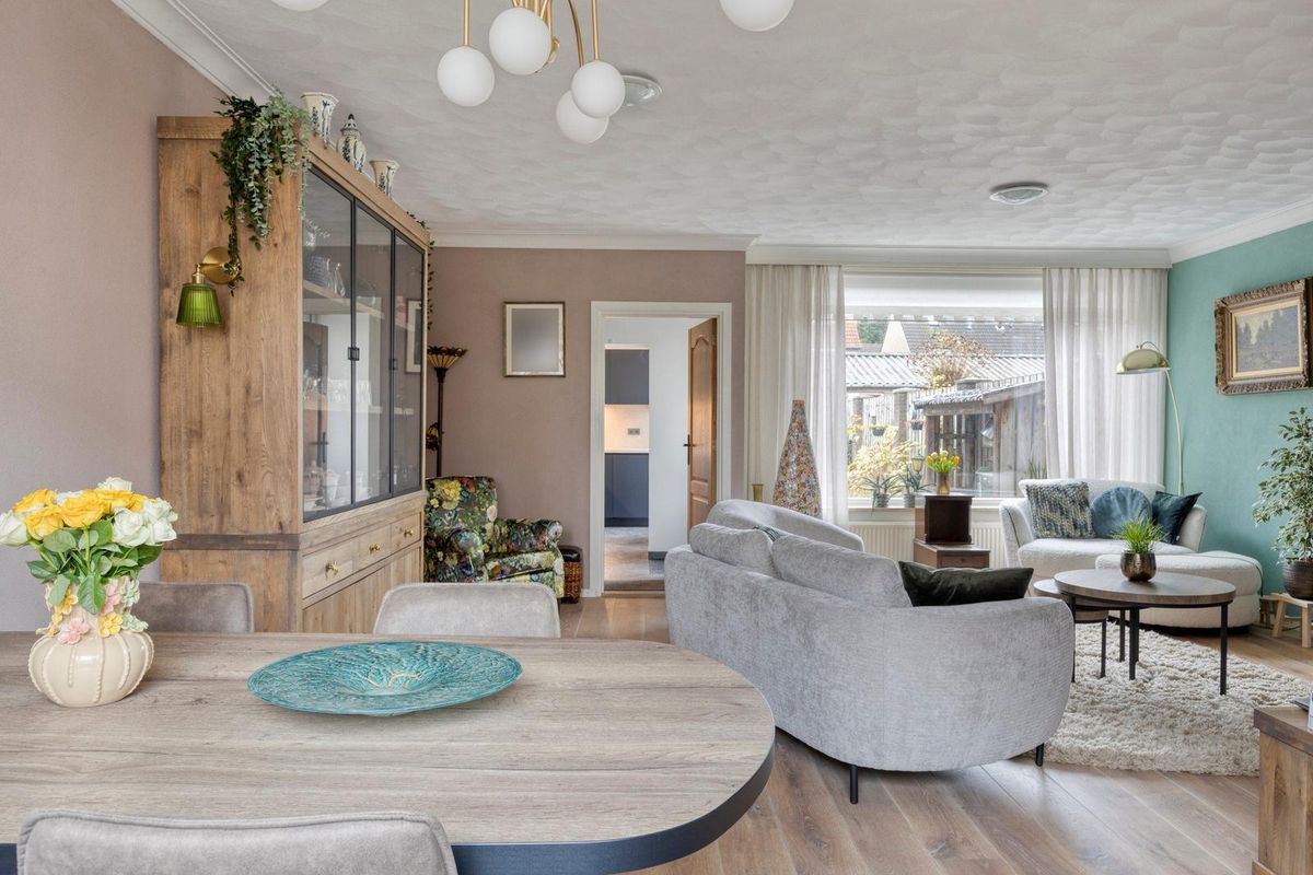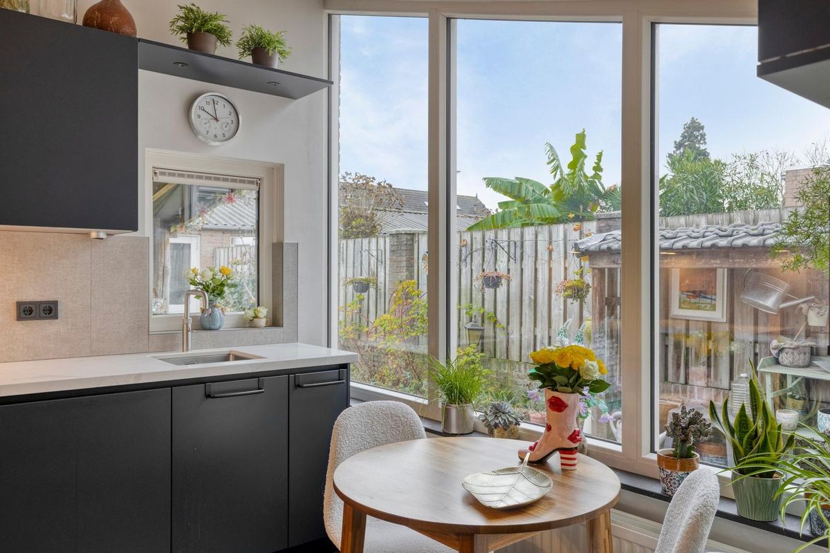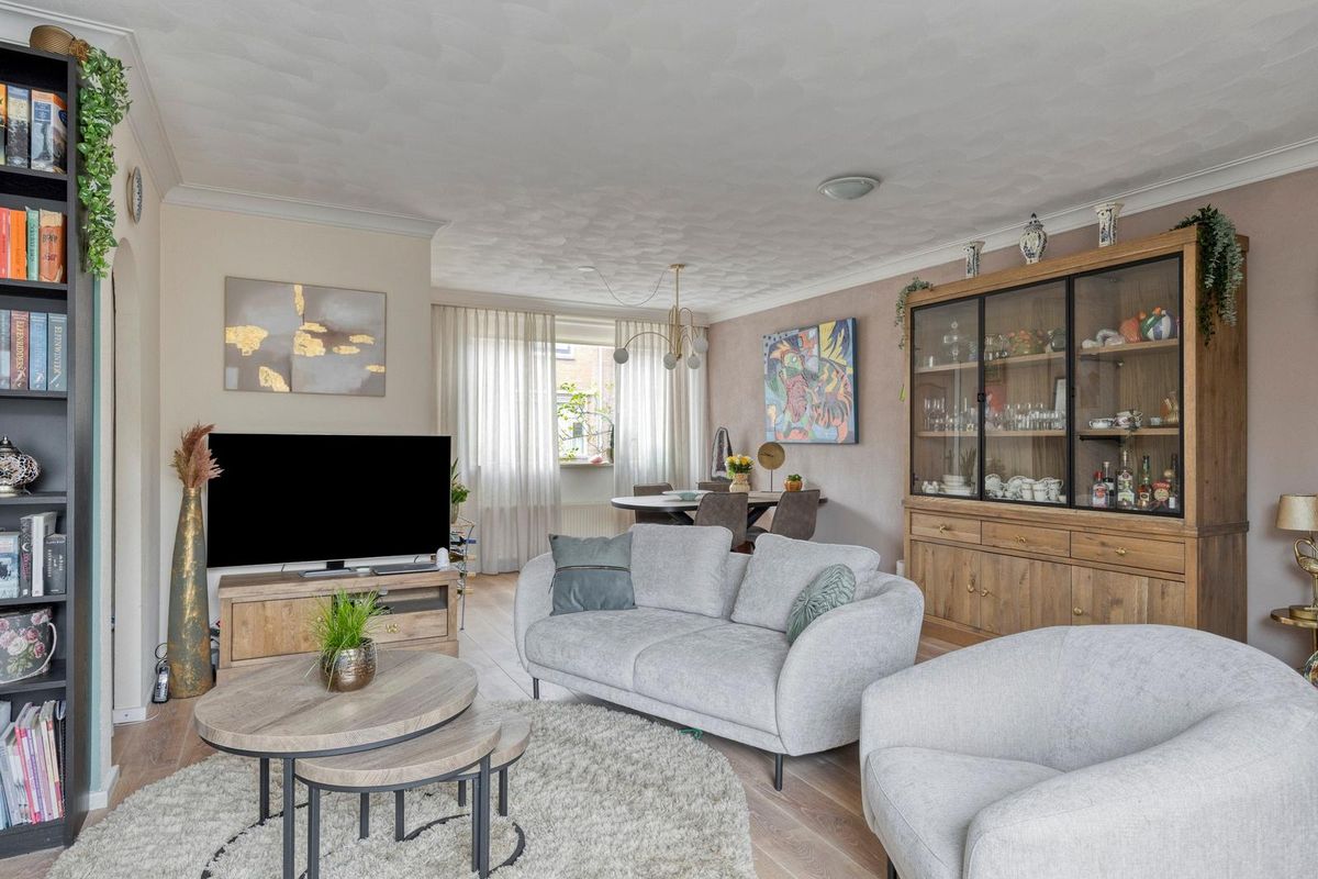 Op de begane grond betreedt u via een overdekte voordeur de hal met trapopgang, meterkast (vernieuwd in 2022 met 3-fasen krachtstroom) en een gerenoveerd modern toilet voorzien van radiator en eenhandsmengkraan. De lichte doorzon woonkamer is voorzien van een eikenhouten vloer die reeds is geschuurd en in een washing is gezet, en inclusief een elektrische zonnewering aan de voorzijde. De woonkamer biedt een fijne tv-hoek, ruimte voor een eettafel en een opbergruimte onder de trap. De moderne keuken is reeds gerenoveerd en uitgerust met een 4-pits inductiekookplaat met ingebouwde afzuiging, quooker, vaatwasser, combi-oven, oven, uitschuifbare kasten en voldoende opbergruimte.