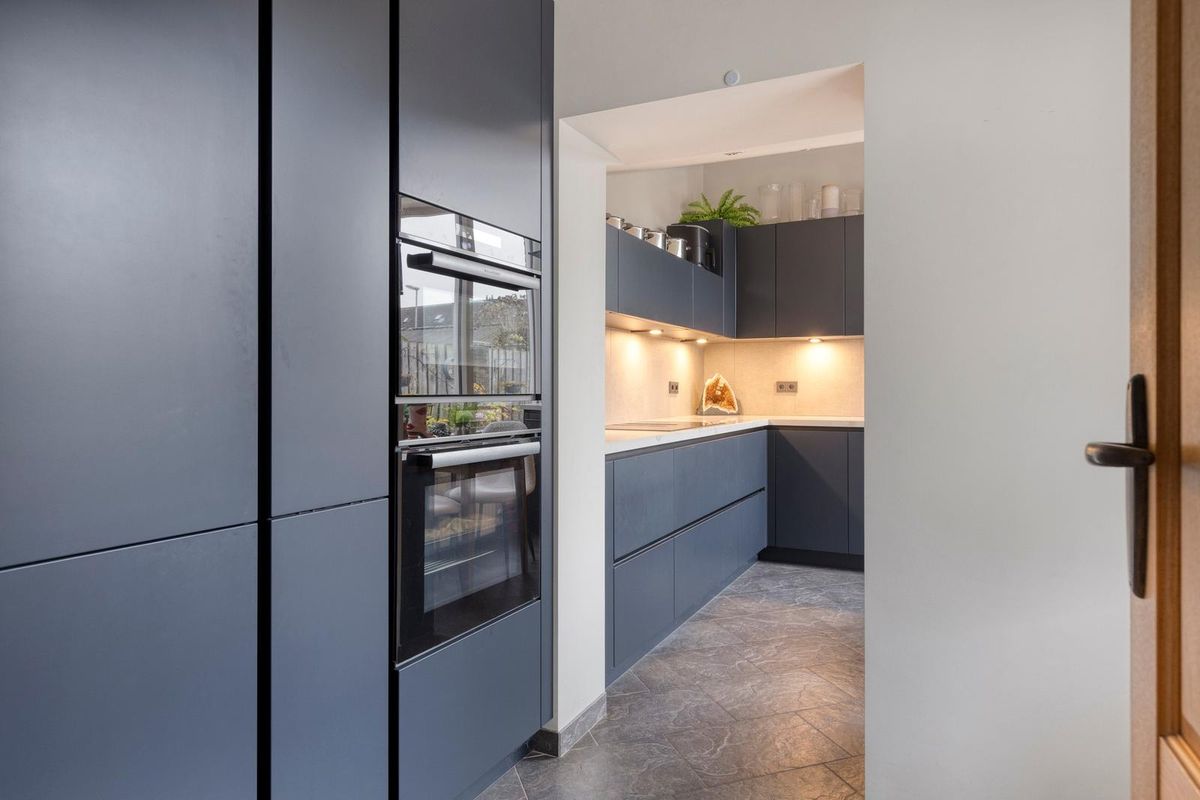 Op de eerste verdieping bevinden zich de master bedroom, een tweede slaapkamer en een derde kamer die naar wens dienst kan doen als kantoor of inloopkast. Daarnaast bevindt zich hier de moderne badkamer, die voorzien is van comfortabele vloerverwarming voor een aangename temperatuur. De badkamer beschikt over een luxe inloop regendouchel, een royaal ligbad, zwevend toilet voor een moderne uitstraling en een designradiator die zowel functioneel is als esthetisch bijdraagt aan het geheel. Deze ruimte is smaakvol afgewerkt en zorgt samen voor een comfortabele en eigentijdse leefomgeving.