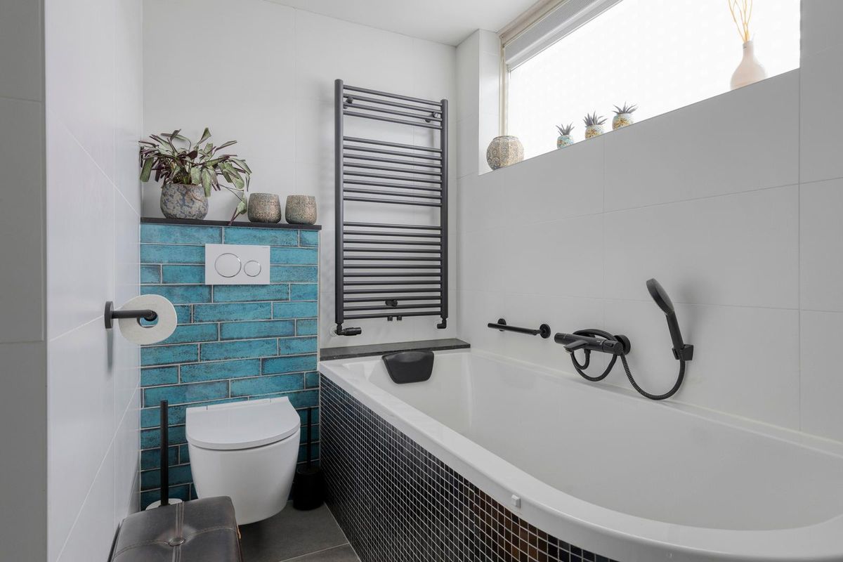 - Moderne badkamer met vloerverwarming, regendouche, ligbad en zwevend toilet;