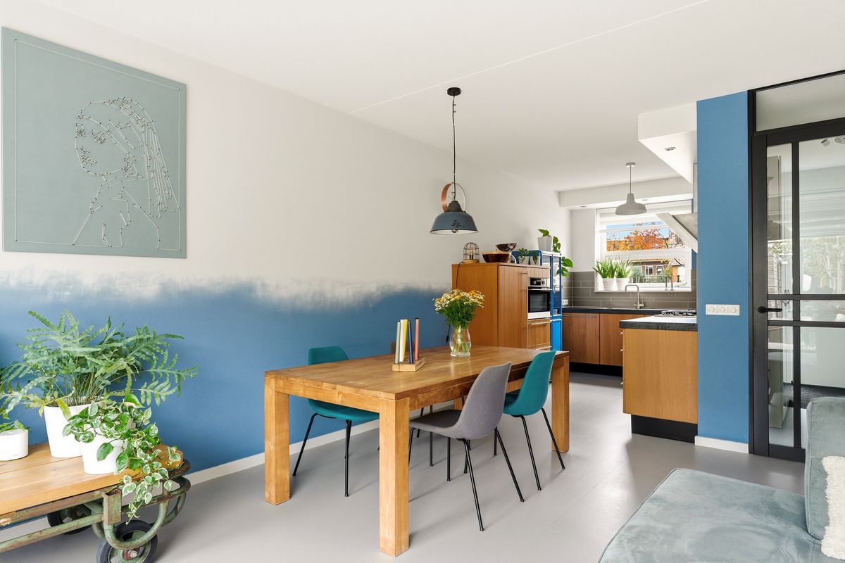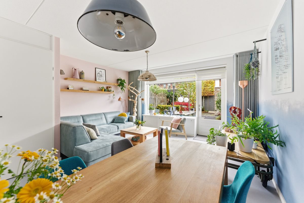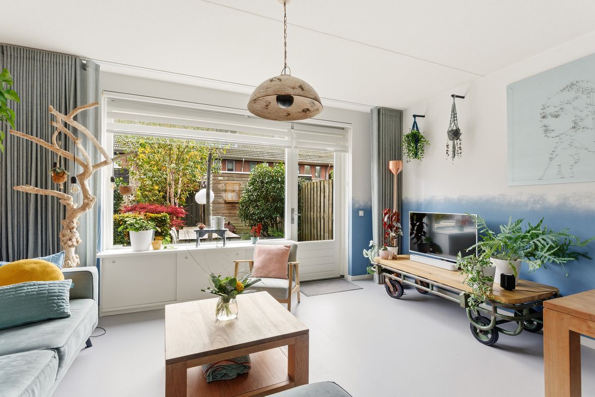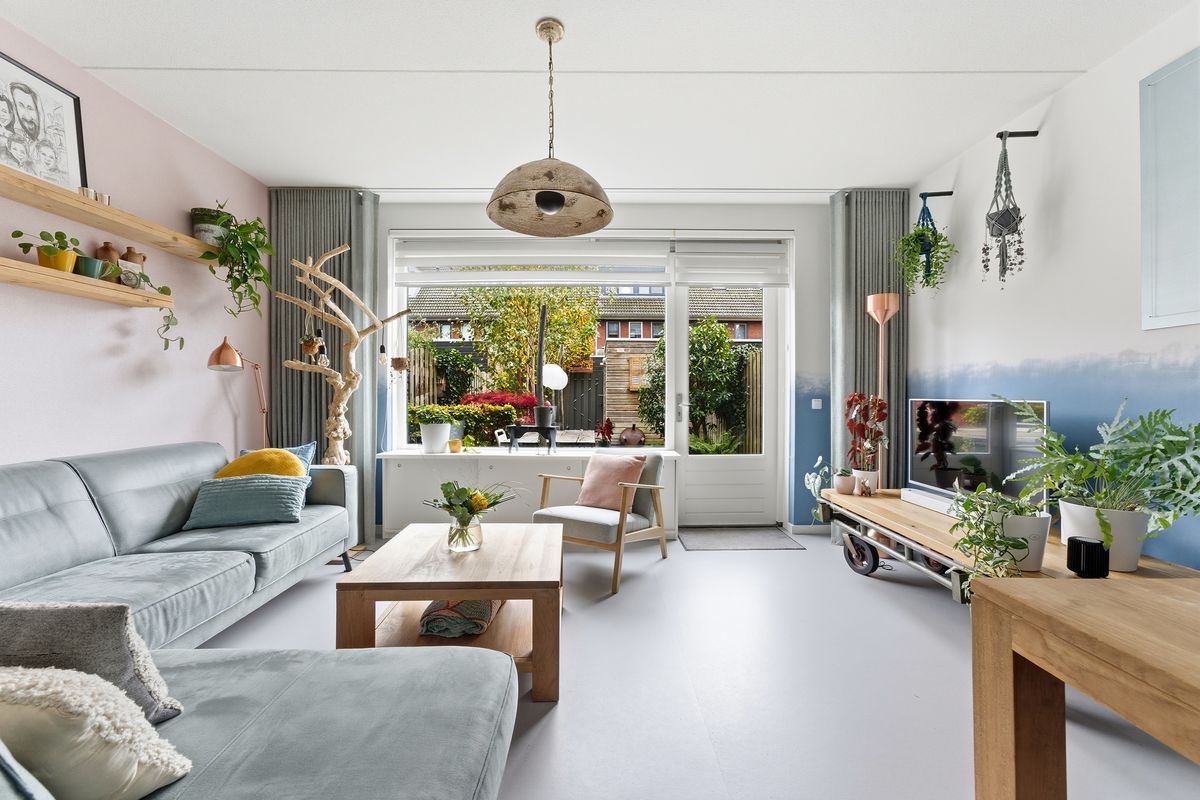 Woonkamer: De tuingerichte woonkamer is licht en ruim door de grote raampartij aan de achterzijde. Via de achterdeur stap je zo de zonnige tuin in. Het zonnescherm aan de achterzijde is perfect voor de warme dagen, zodat de zon buiten blijft. De trapkast biedt extra opbergruimte voor al je spullen. De ruimte is afgewerkt met een nette marmoleum vloer, (glasvlies)behang en een strak spuitwerkplafond.