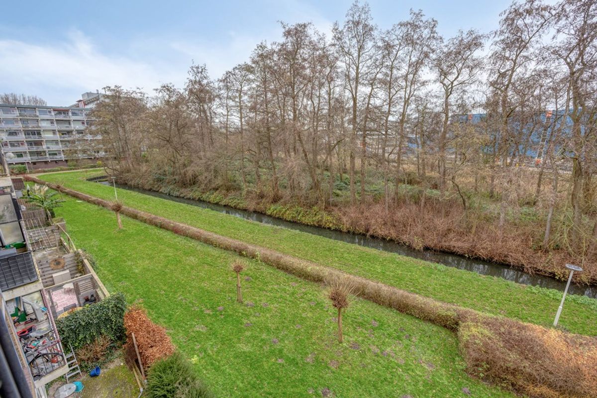 Aan de achterzijde van het appartement bevindt zich een royaal balkon op het zuiden met vrij uitzicht op het groen. Hier geniet je in alle rust van de zon en privacy, want het balkon is niet geschakeld. Aan de voorzijde is er bovendien een tweede balkon, wat zorgt voor extra buitenruimte en een fijne verbinding met de levendige straat.