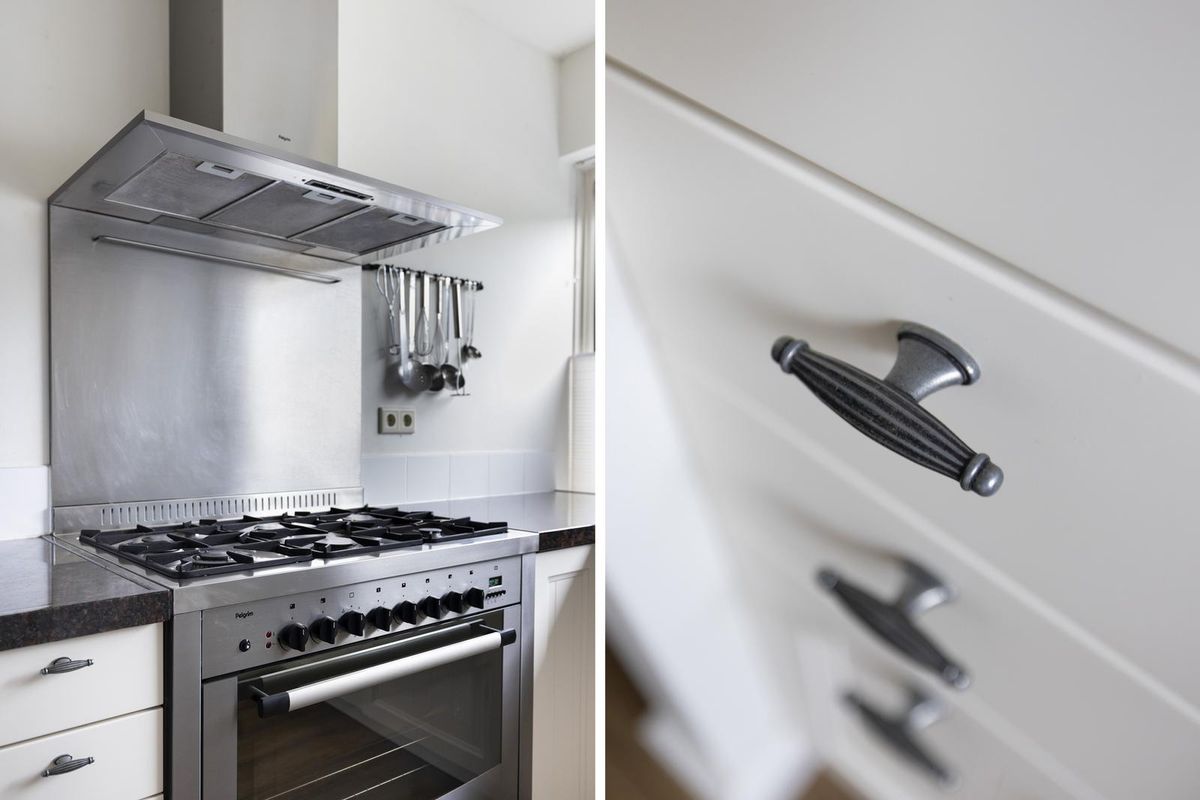 Aan de achterzijde bevindt zich een praktische bijkeuken met vaste kastenwand en deze biedt ook toegang tot de tuin.