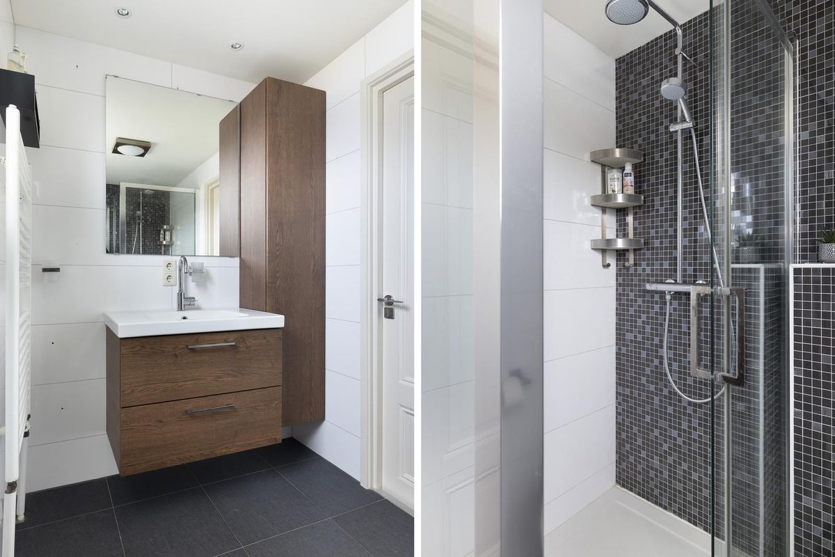 De badkamer is modern uitgevoerd met een inloopdouche, wastafelmeubel, tweede toilet, handdoekenradiator en vloerverwarming.