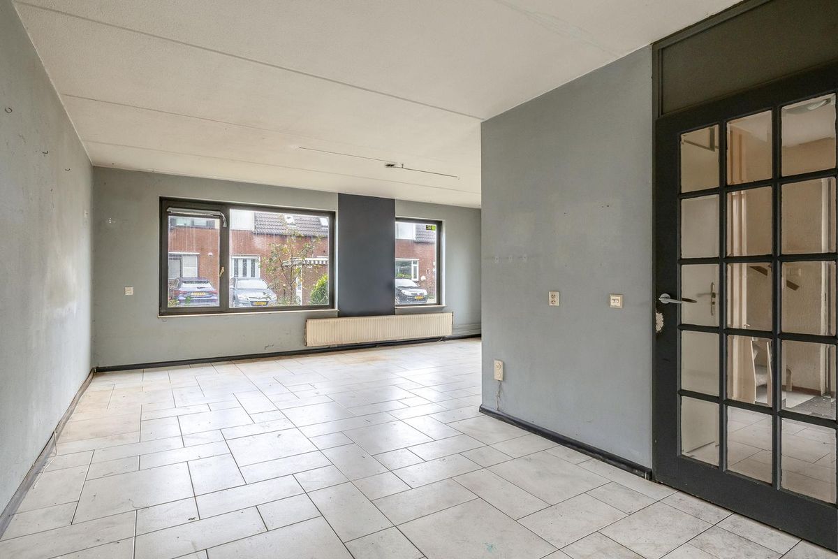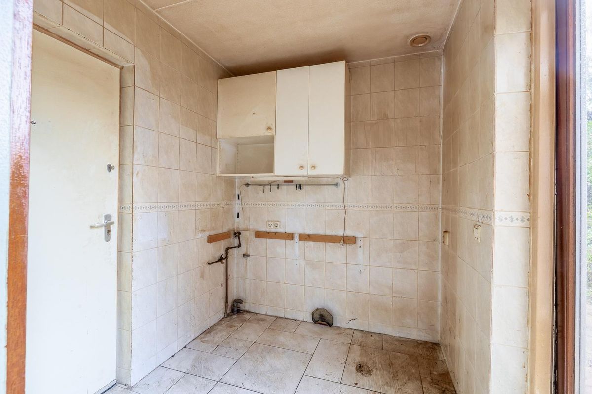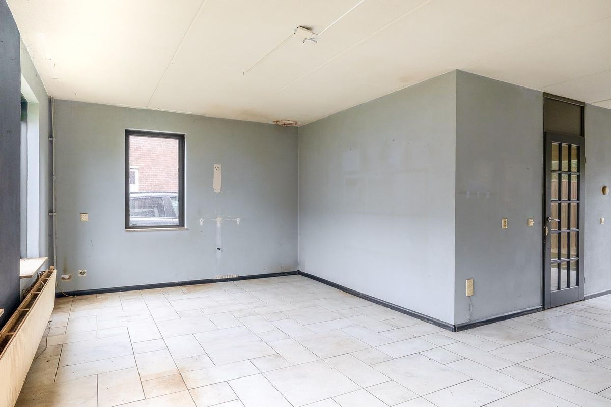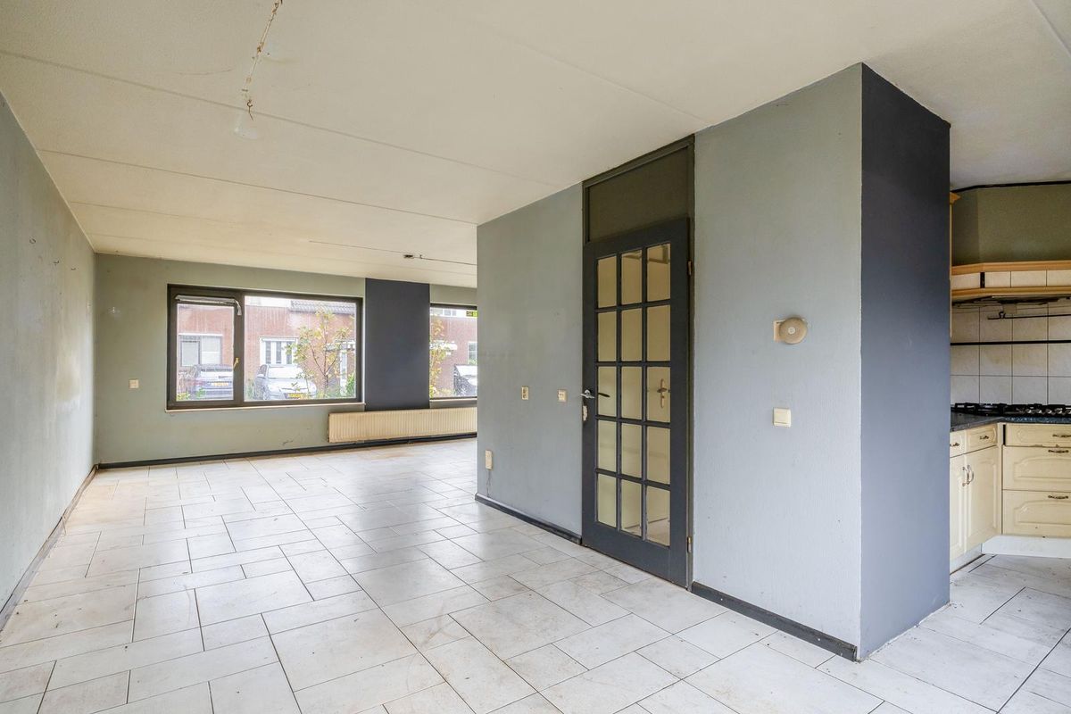 Ruime oprit en entree/hal met meterkast, trapopgang en toilet. De woonkamer is aan de voorzijde van de woning gesitueerd. Bij binnenkomst valt direct de ruimte en het licht op. De halfopen keuken biedt tal van mogelijkheden om een eigentijdse leefkeuken te realiseren. Vanuit de aangrenzende bijkeuken is ook de garage bereikbaar — ideaal voor de auto, hobby’s of extra bergruimte.