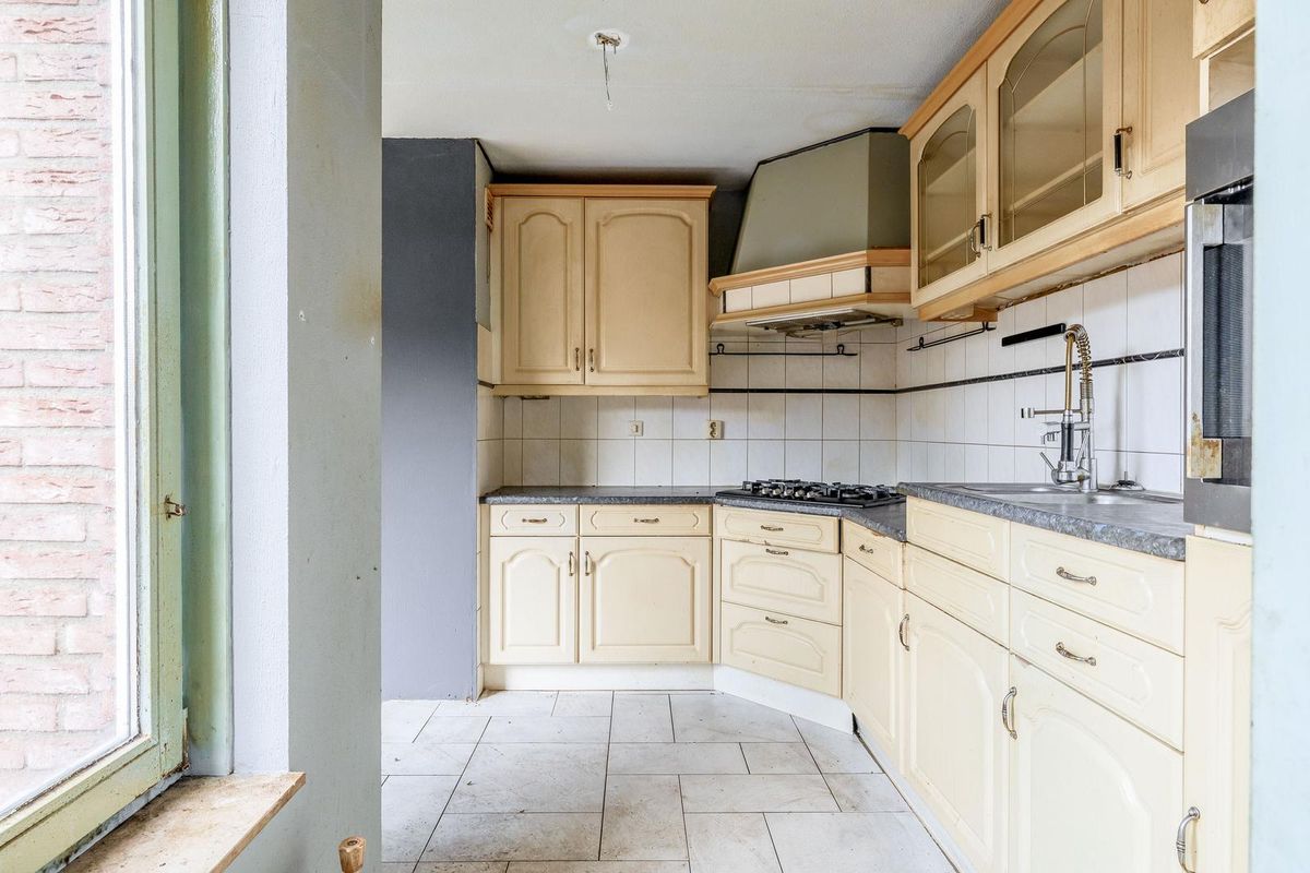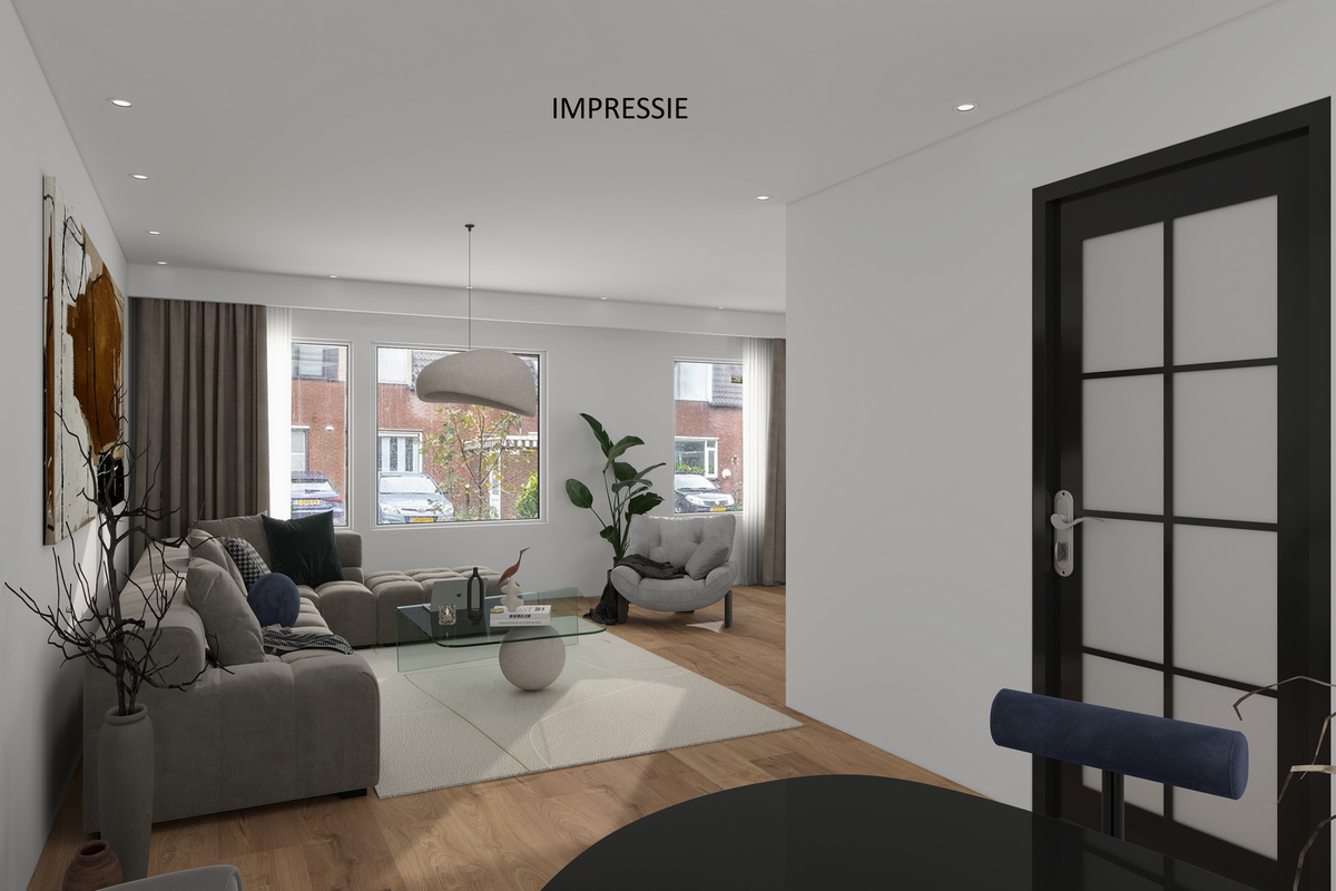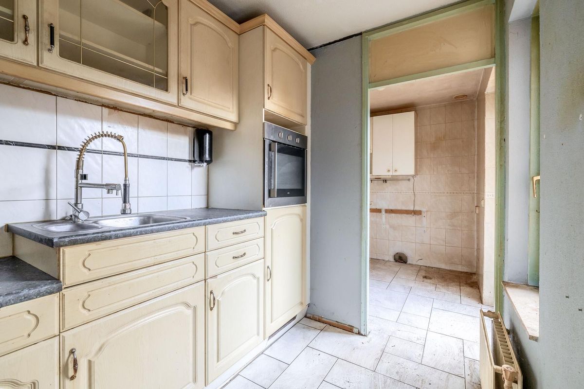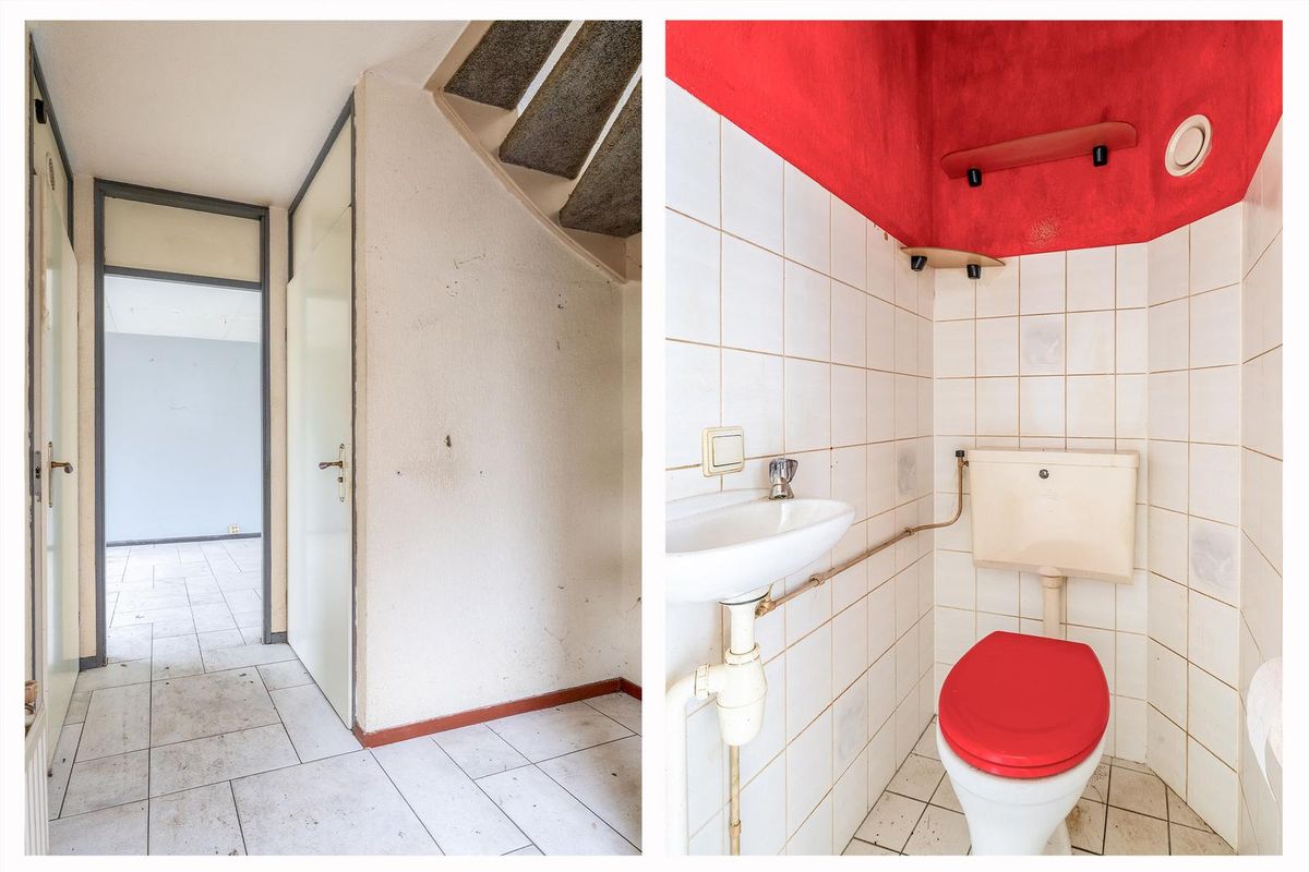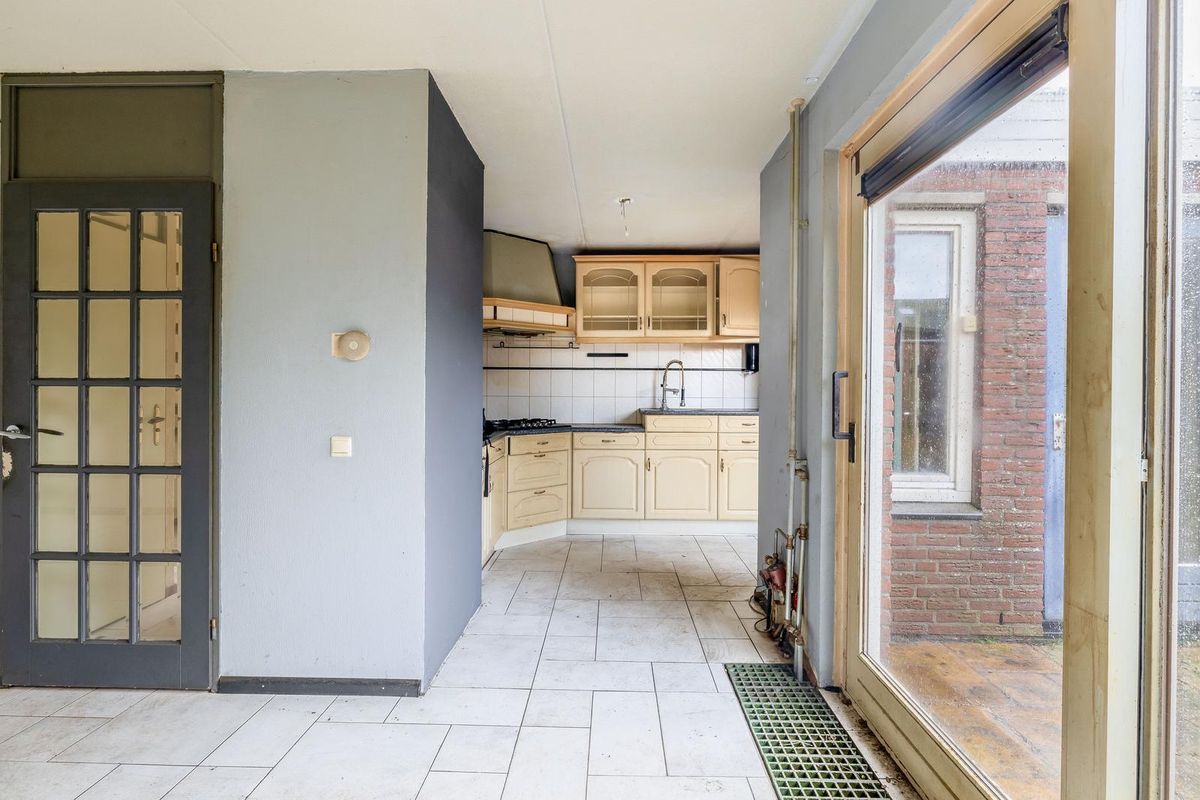 Ruime oprit en entree/hal met meterkast, trapopgang en toilet. De woonkamer is aan de voorzijde van de woning gesitueerd. Bij binnenkomst valt direct de ruimte en het licht op. De halfopen keuken biedt tal van mogelijkheden om een eigentijdse leefkeuken te realiseren. Vanuit de aangrenzende bijkeuken is ook de garage bereikbaar — ideaal voor de auto, hobby’s of extra bergruimte.