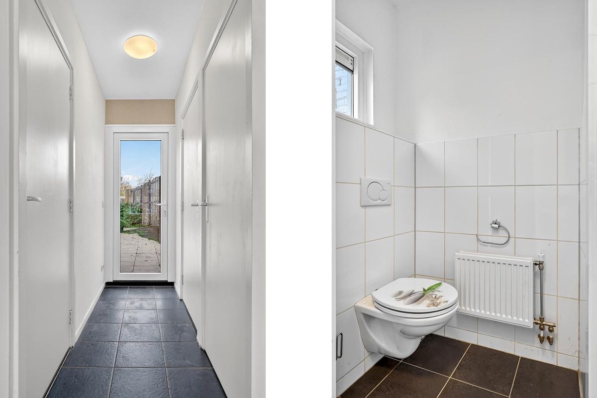 Bij binnenkomst stap je in de hal met meterkast, die toegang biedt tot de living. De ruime woonkamer heeft een tegelvloer, staat in open verbinding met de keuken en biedt toegang tot de kelderruimte. De open keuken bereikbaar welke praktisch is ingericht en voorzien van een 5-pits gasfornuis, oven, afzuigkap en vaatwasser. Vanuit de keuken is een gang bereikbaar met toegang tot de badkamer, apart toilet en wasruimte. De badkamer is voorzien van een douche, ligbad en wastafel. Vanuit de gang is de tuin bereikbaar via een loopdeur.