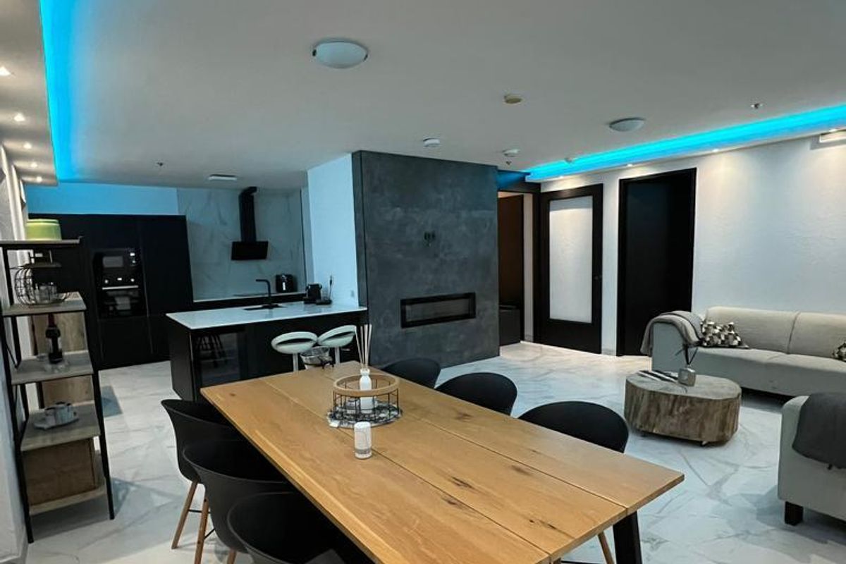 De woning beschikt over een lichte woonkamer met grote raampartijen en natuurstenen vloer, een luxe open keuken met bar en hoogwaardige inbouwapparatuur (waaronder wijnklimaatkast, combi-oven, inductiekookplaat, vaatwasser en koel-/vriescombinatie), twee ruime slaapkamers, een vernieuwd gastentoilet en een moderne badkamer met ligbad, inloopdouche, dubbele wastafel en vloerverwarming.