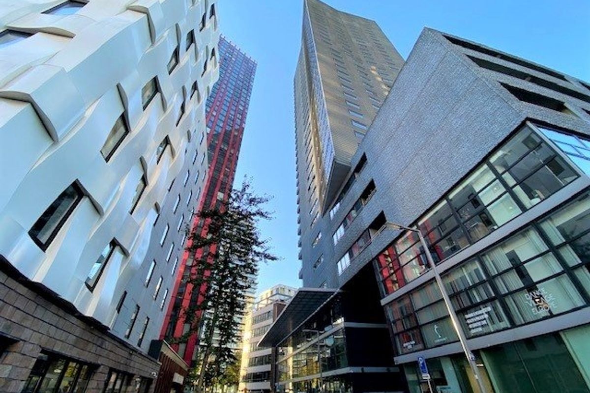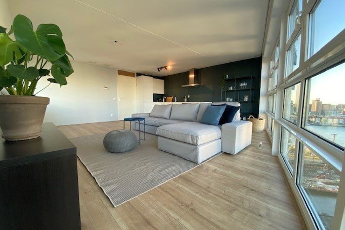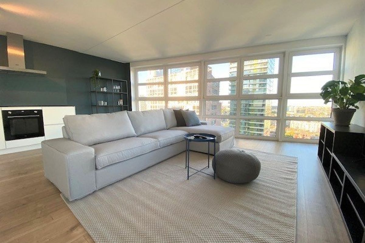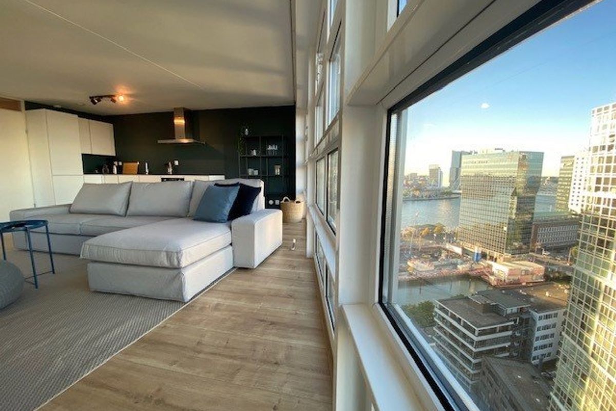 Step into this beautiful, fully furnished two-bedroom apartment located in the vibrant heart of Rotterdam. Situated on the 21st floor, the apartment offers breathtaking panoramic views of the city from both the bright, spacious living room and the master bedroom. The corner living room is filled with natural light, creating an inviting and warm atmosphere, perfect for relaxing or entertaining guests.