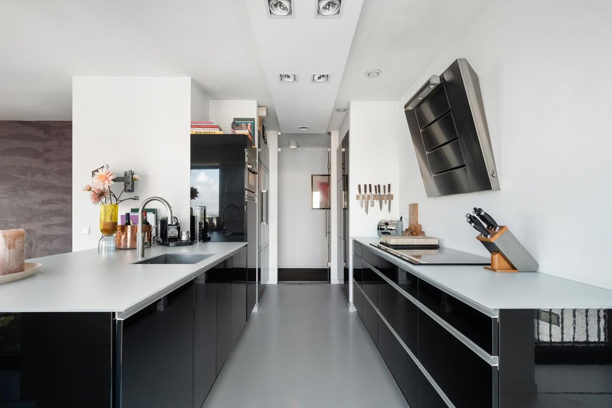 De keuken vormt het kloppende hart van dit appartement: strak uitgevoerd in hoogglans zwart en met een ruim eiland dat naadloos overloopt in de eetruimte. Terwijl je kookt, blijf je in direct contact met je gasten aan tafel. De keuken is uitgerust met hoogwaardige inbouwapparatuur en biedt meer dan alleen functionaliteit: dit is een plek waar koken en samenzijn één worden. Het pronkstuk is de royale wijnklimaatkast, voor de echte liefhebber.