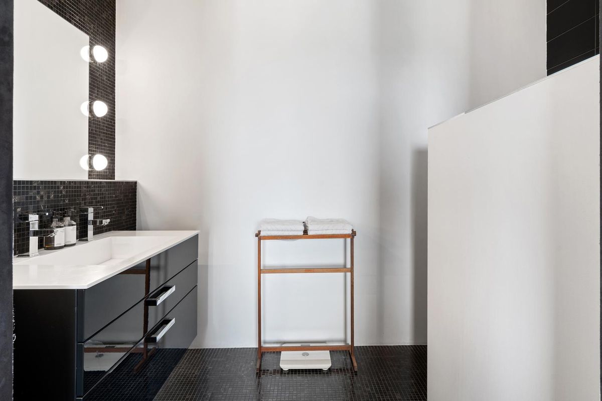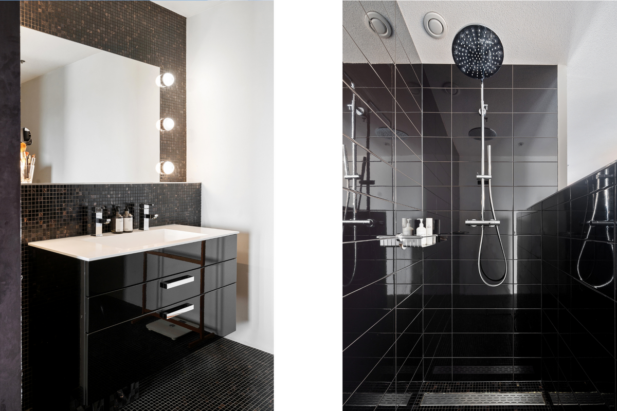 The kitchen is the heart of the apartment: sleek in high-gloss black, with a spacious island that seamlessly flows into the dining area. While you cook, you remain in direct contact with your guests at the table. Fully equipped with high-quality built-in appliances, this kitchen offers more than functionality—it’s a place where cooking and socializing merge. Its showpiece: a generous wine climate cabinet, designed for the true connoisseur.