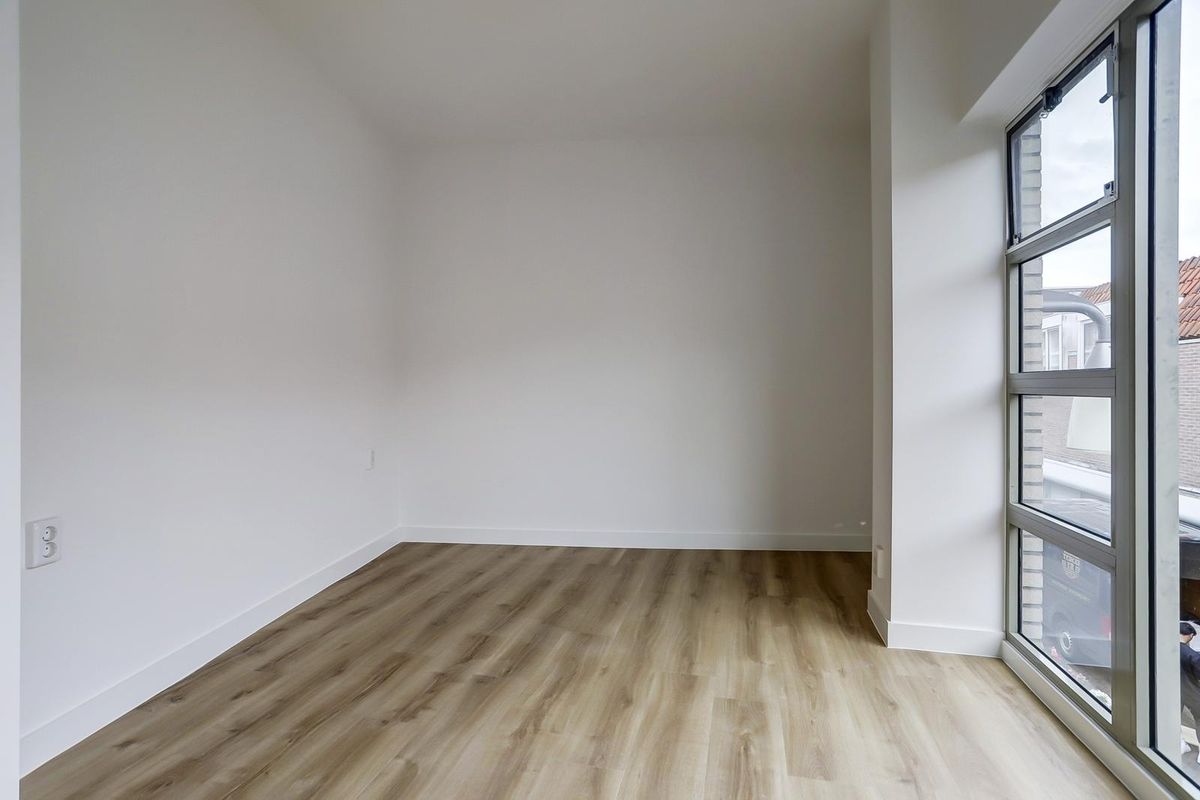 Op de eerste woonlaag vindt u de entree van het appartement. Hier komt u binnen in een lichte hal met toegang tot alle vertrekken op deze verdieping. Beide kamers bevinden zich aan de achterzijde van de woning. De royale slaapkamer beschikt over een grote raampartij die zorgt voor veel natuurlijk licht. De tweede kamer is eveneens gelegen aan de achterzijde en is perfect in te richten als werkkamer, hobbyruimte of extra slaapkamer. De moderne badkamer is strak afgewerkt en voorzien van een ruime douchecabine met zwarte details, een wastafelmeubel en een toilet. Tevens is er een handige kast aanwezig met de boiler-installatie en meterkast, ideaal als extra bergruimte voor bijvoorbeeld schoonmaakspullen of voorraad.