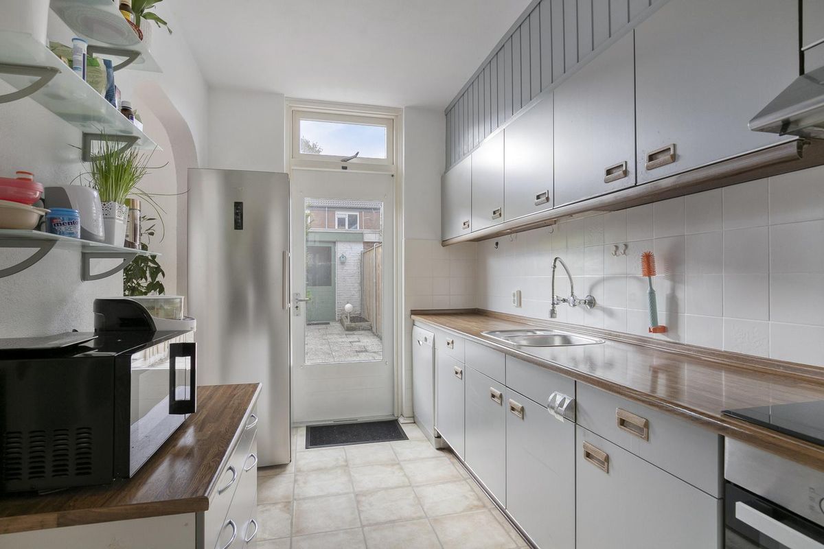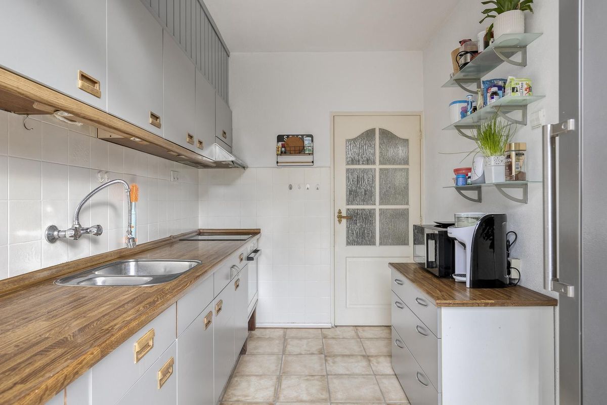 De gesloten keuken is gelegen aan de achterzijde en biedt toegang tot de tuin. De keuken is netjes onderhouden en praktisch ingedeeld met veel kastruimte en werkblad. De ruimte leent zich uitstekend voor het realiseren van een moderne woonkeuken, mocht de koper dat wensen.