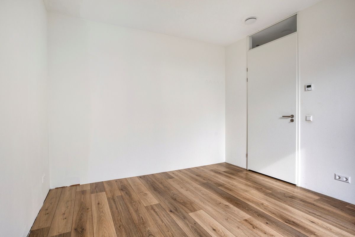 De tweede slaapkamer is van een groter formaat en zeer geschikt als hoofdslaapkamer. Er is voldoende plek voor een tweepersoonsbed en kledingkast.