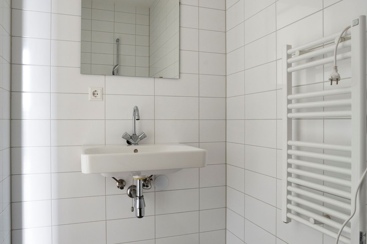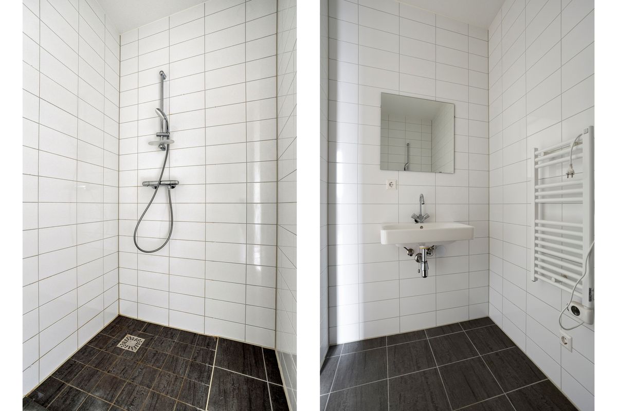In de badkamer is een douche, handdoekradiator en wastafel met spiegel. Er is een apart toilet en interne berging waar de wasmachine aansluiting aanwezig is.
