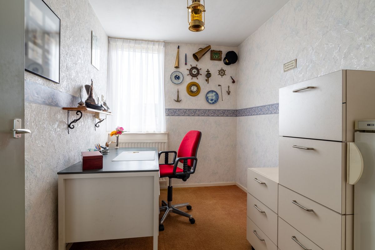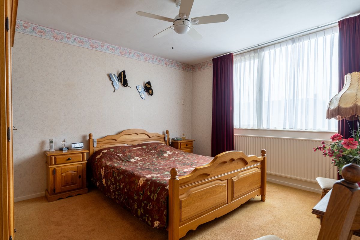 Boven zijn drie slaapkamers te vinden, allemaal bereikbaar via de overloop. Ideaal voor ouders, kinderen, logees of voor de thuiswerkers onder ons een extra kantoor. De badkamer is netjes, functioneel en uitgerust met een ruime inloopdouche, wastafel, zwevend toilet en een aansluiting voor de wasmachine. Alles wat je nodig hebt, op één plek. Op de overloop vind je ook de toegang tot de bergzolder via een vlizotrap. Maar let op: wie iets hoger mikt, kan hier met een vaste trap zelfs een extra kamer realiseren. De zolder heeft een dakraam, cv-ketel én omvormer van de zonnepanelen — want ook een klassieker als deze doet mee in de duurzaamheid.