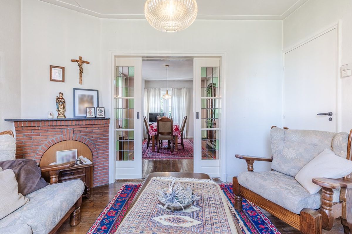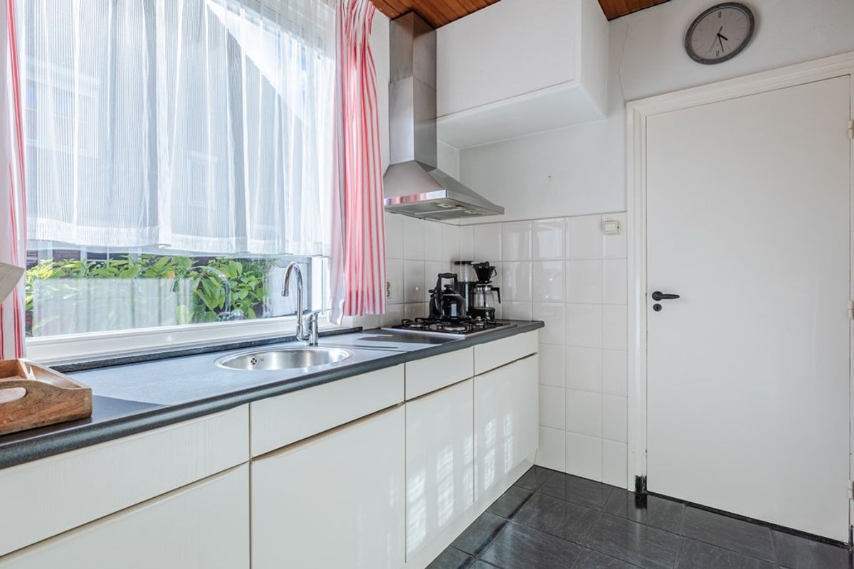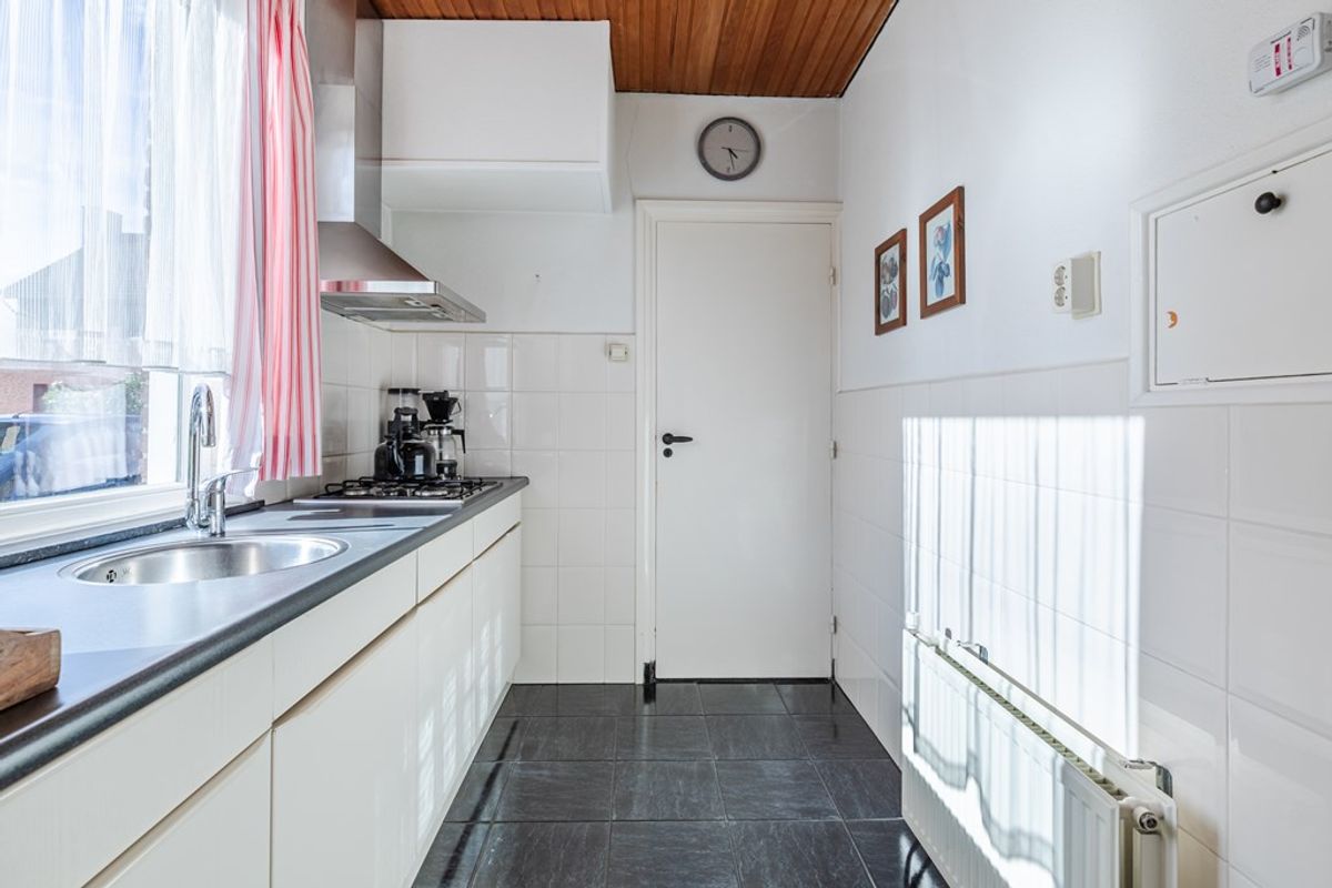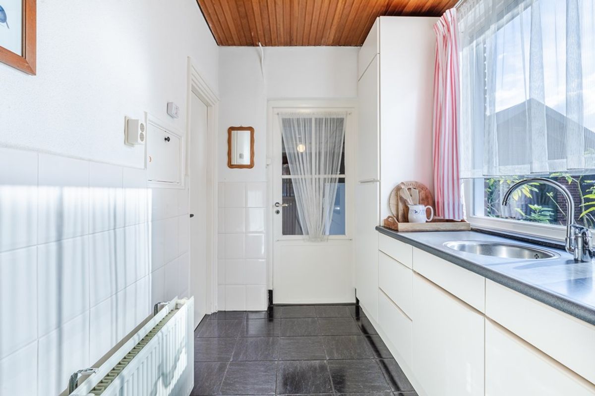 Hal met tegelvloer (7 m²), zwevend toilet, sfeervolle woonkamer-en-suite (31 m²) met een houten planken vloer en originele schuifdeuren, dichte keuken (6 m²) met tegelvloer en een keukenopstelling v.v. een gaskookplaat, afzuigkap en koelkast, serre (9 m²), bijkeuken (4 m²) met tegelvloer, badkamer (3 m²) met douche en zwevend toilet, de garage (17 m²) en een berging