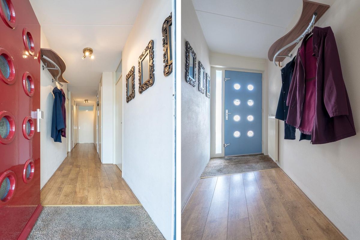 Vanuit de lift loopt u overdekt over de gemeenschappelijke daktuin naar de voordeur van de woning. Daarachter treft u de ruime entree hal welke toegang geeft tot alle vertrekken waaronder de moderne meterkast en de verrassend ruime inpandige berging met opstelplaats voor wasmachine en droger.