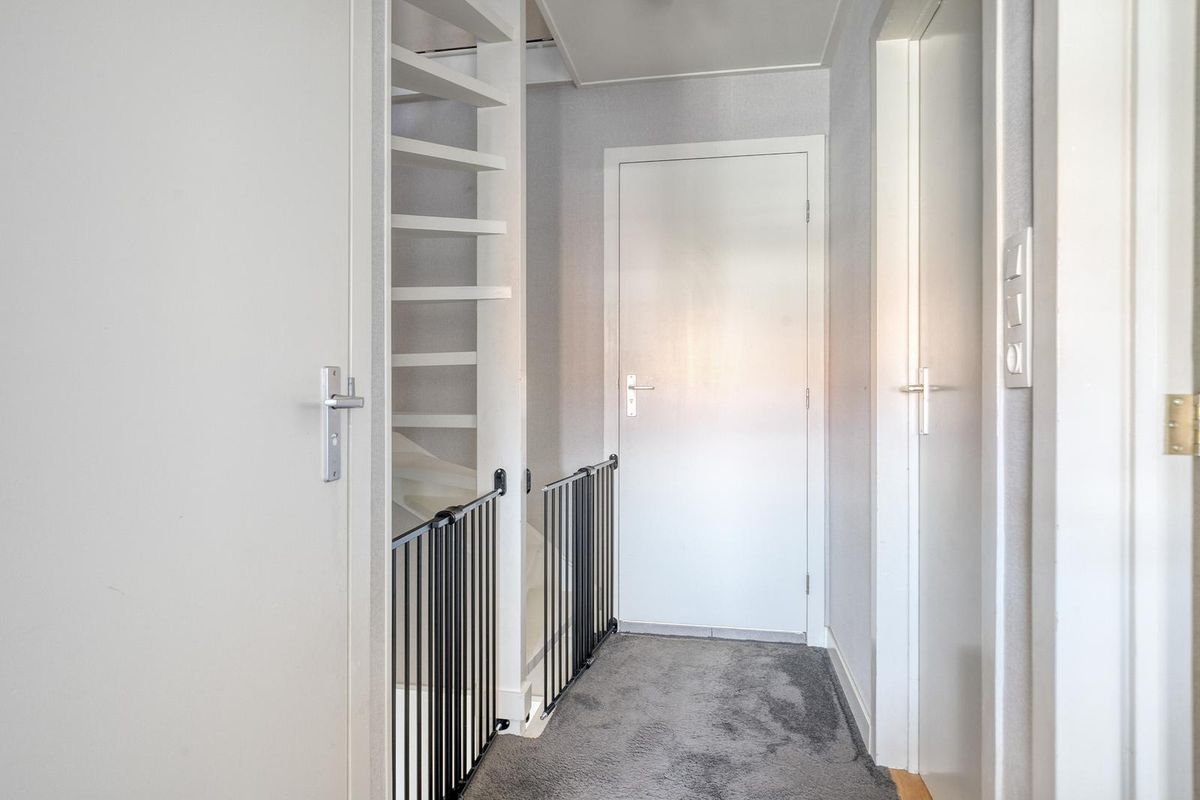 De tweede verdieping verrast met een vierde slaapkamer, compleet met extra bergruimte achter de schotten. Dit kan een perfecte tienerkamer zijn, maar ook een rustige thuiswerkplek of hobbykamer. De ruimte voelt licht en praktisch in gebruik.