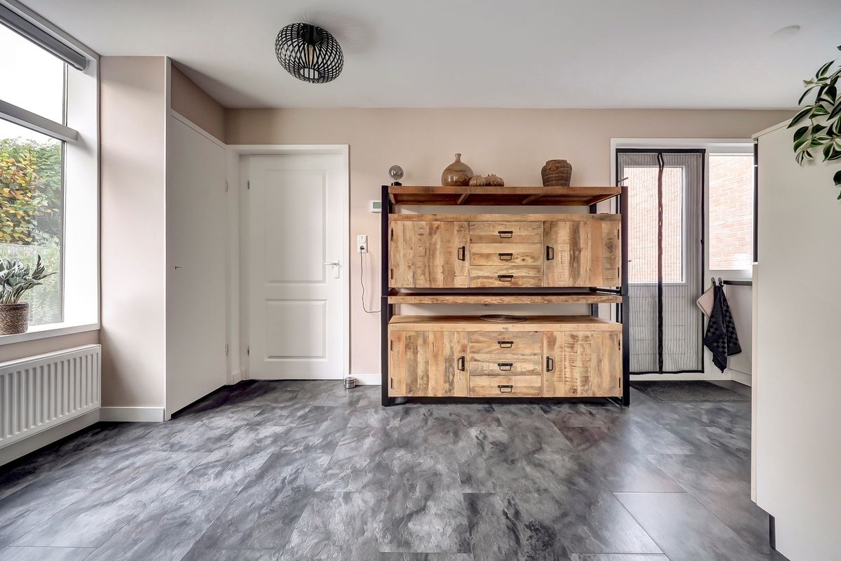 De indeling is als volgt: entree in de uitbouw, hal met aan de linkerzijde het toilet, recht vooruit de badkamer (met inloopdouche, badkamermeubel, designradiator en cv-kast) en aan uw rechterhand een deur naar de royale living van 37 m² (met veel ramen en een hoge mate van daglichttoetreding), bestaande uit de woonkamer (met meterkast en binnenhal met trapopgang en aansluitingen en afvoeren t.b.v. de wasapparatuur) en de open keuken met hoekinbouwkeuken (voorzien van apparatuur: afzuigkap, gaskookplaat, combi-oven en koelkast met vriesvakje). De beganegrondvloer is afgewerkt met laminaat; De vloer van de hal, badkamer en het toilet is voorzien van vloerverwarming.