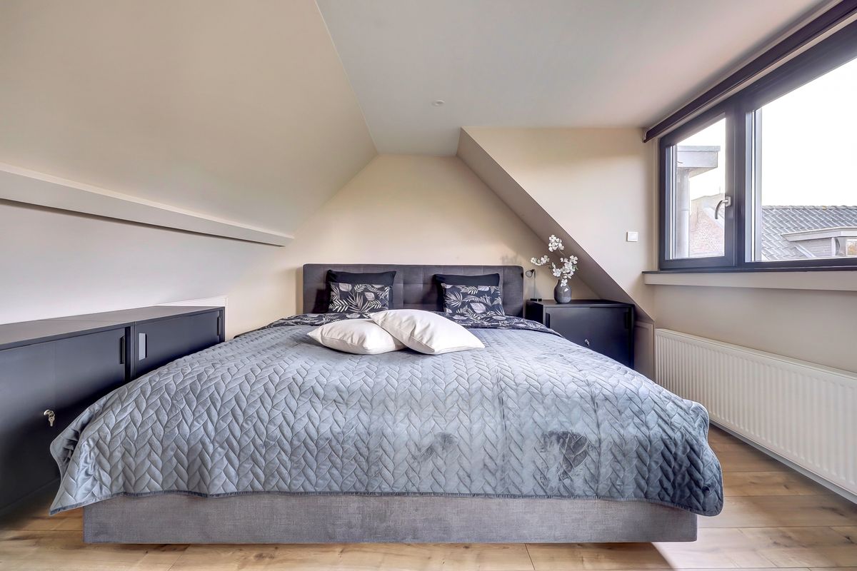 Op de verdieping is recentelijk een dakkapel over de maximale breedte aangebracht. De verdieping is verdeeld in een royale voorzolder/logeer-/werkkamer en een heerlijke slaapkamer .Denieuwe airco zorg op de warme dagen voor heerlijke verkoeling. Voor de afmetingen verwijs ik u graag naar de plattegronden.