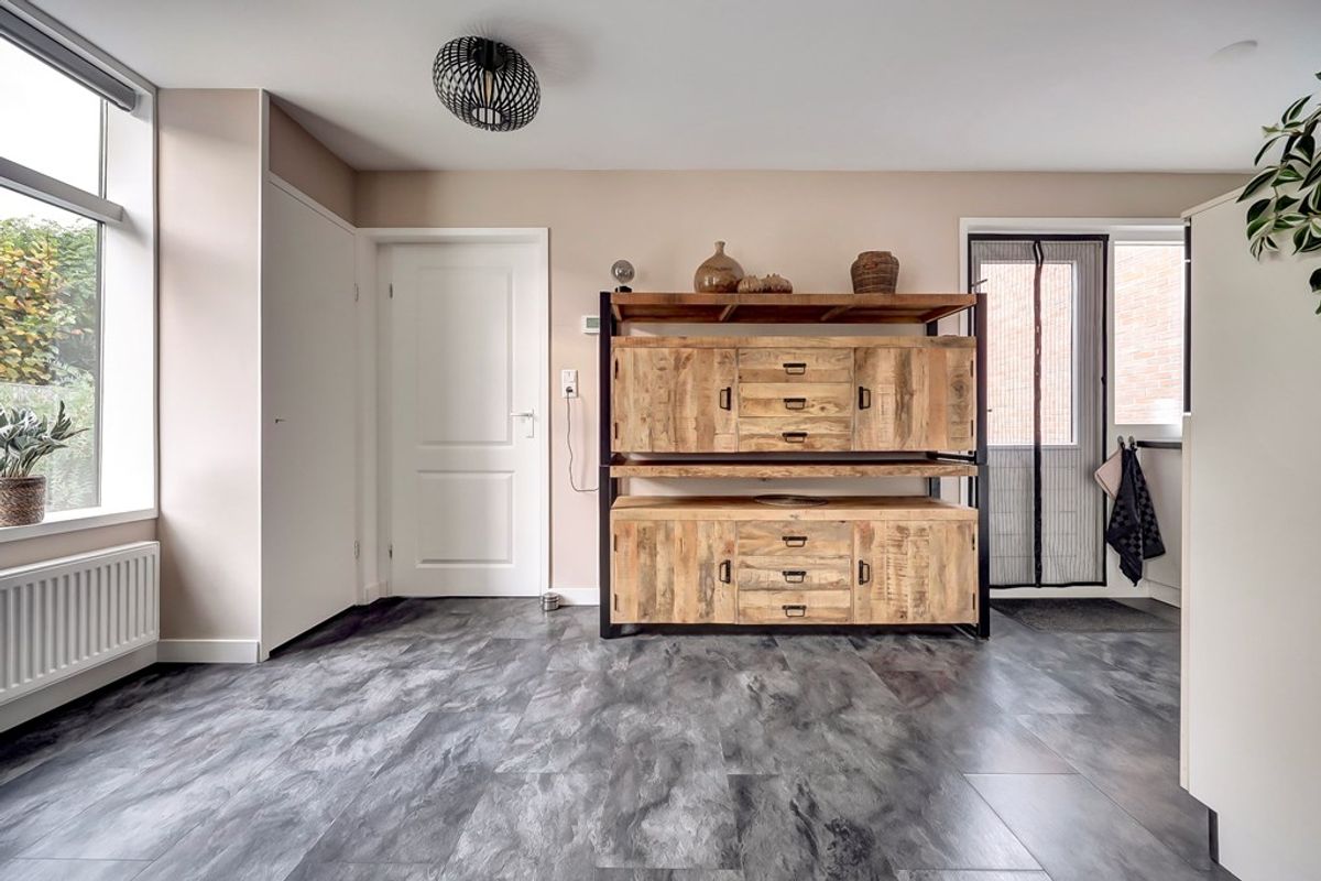 De indeling is als volgt: entree in de uitbouw, hal met aan de linkerzijde het toilet, recht vooruit de badkamer (met inloopdouche, badkamermeubel, designradiator en cv-kast) en aan uw rechterhand een deur naar de royale living van 37 m² (met veel ramen en een hoge mate van daglichttoetreding), bestaande uit de woonkamer (met meterkast en binnenhal met trapopgang en aansluitingen en afvoeren t.b.v. de wasapparatuur) en de open keuken met hoekinbouwkeuken (voorzien van apparatuur: afzuigkap, gaskookplaat, combi-oven en koelkast met vriesvakje). De beganegrondvloer is afgewerkt met laminaat; De vloer van de hal, badkamer en het toilet is voorzien van vloerverwarming.