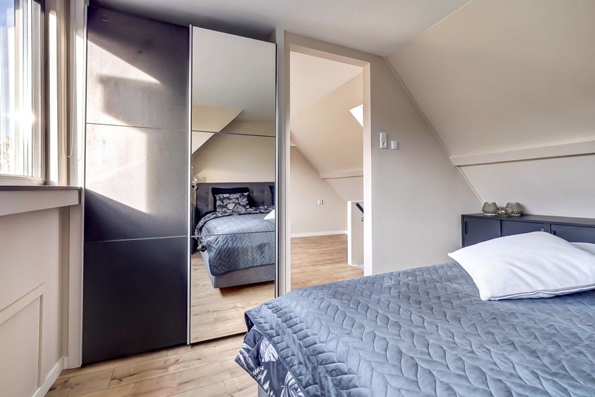 Op de verdieping is recentelijk een dakkapel over de maximale breedte aangebracht. De verdieping is verdeeld in een royale voorzolder/logeer-/werkkamer en een heerlijke slaapkamer .Denieuwe airco zorg op de warme dagen voor heerlijke verkoeling. Voor de afmetingen verwijs ik u graag naar de plattegronden.