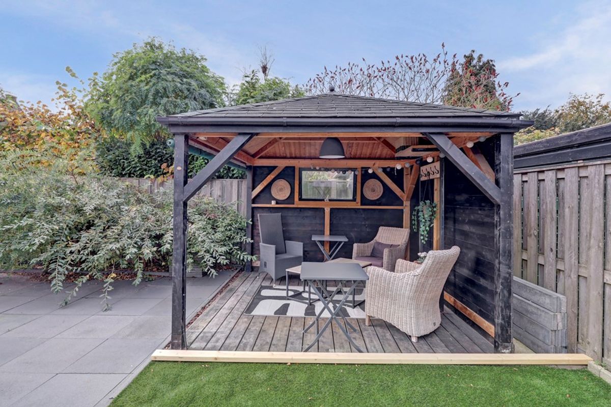Instapklare halfvrijstaande 'dorpswoning' (de achterste helft van een blok van twee woningen onder één kap) met een onderhoudsvriendelijke en zonnige tuin met lekker veel privacy, een flinke berging (19 m²) en een overkapping/veranda.
