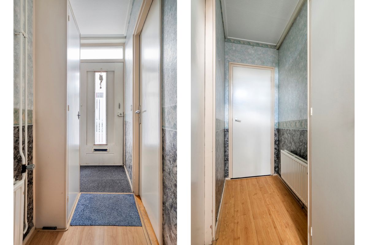 Via de voordeur stap je binnen in de hal met een bergkast en een meterkast (voorzien van 9 groepen en een krachtgroep).