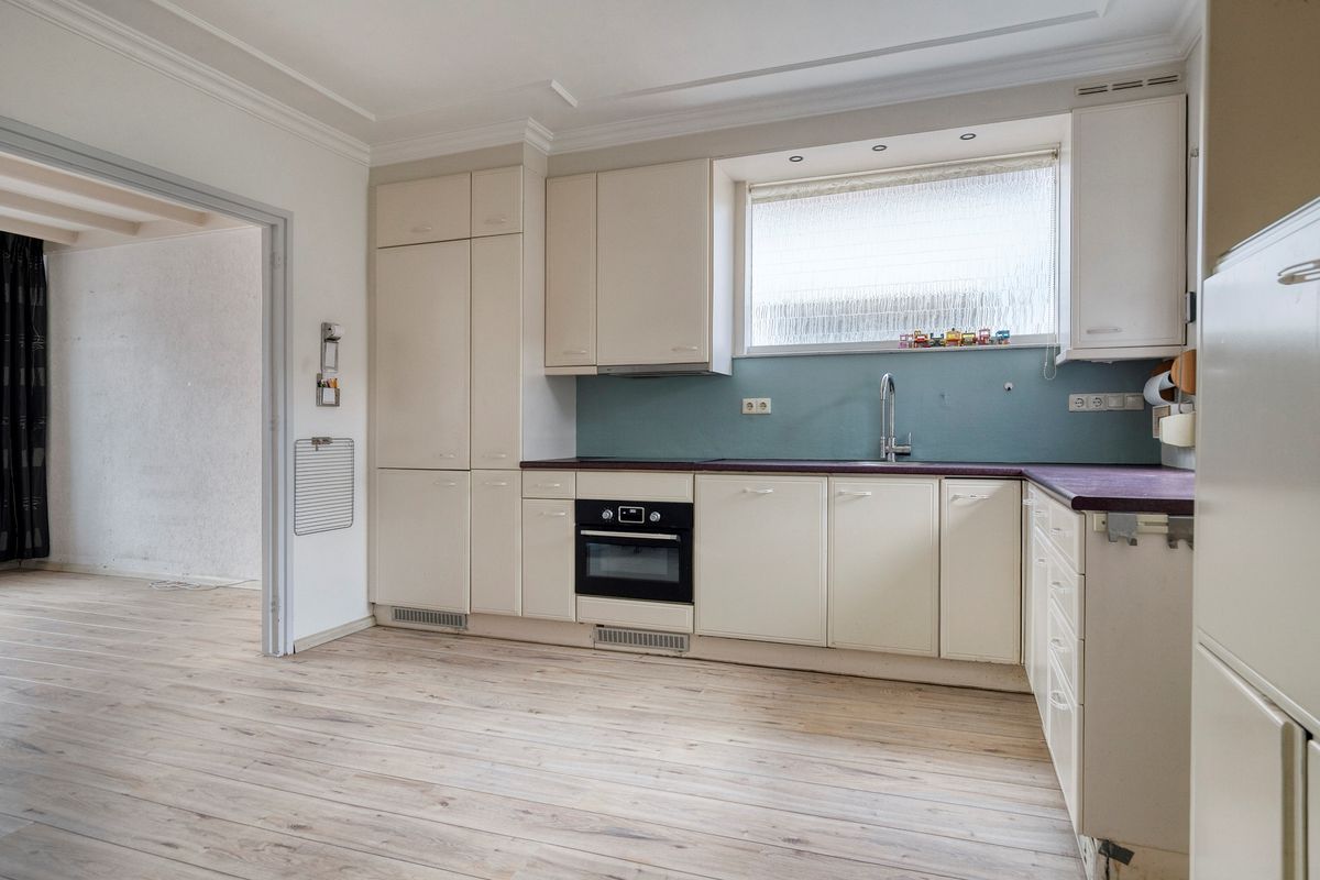 Vanuit de bijkeuken loop je zo de achtertuin in.