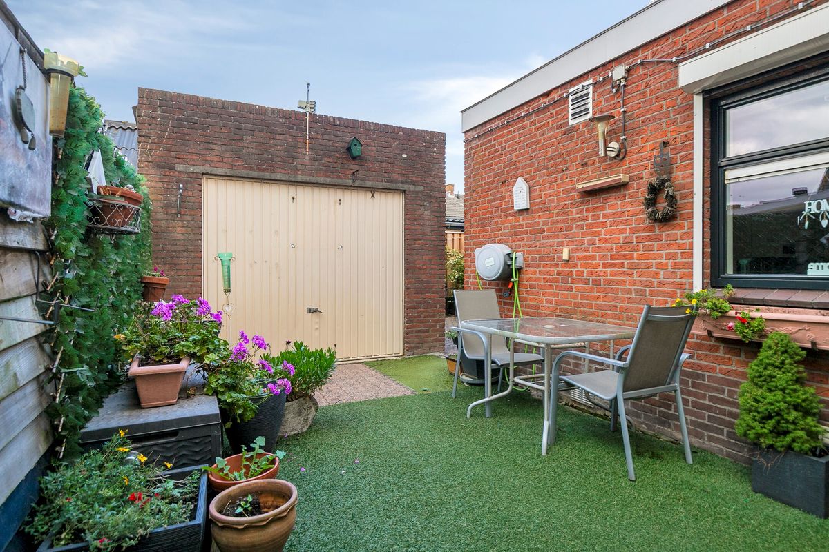 Halverwege de tuin staat de ruime garage van 34 m²: ideaal voor hobbyisten, als opslag of zelfs als werkruimte.