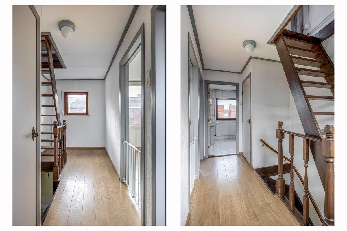 Overloop met cv-opstelling en een ruime zolderkamer. Deze zolderkamer biedt meer dan genoeg mogelijkheden om een derde slaapkamer of werkruimte te creëren. Dankzij de ruimte voelt het als een volwaardige verdieping.