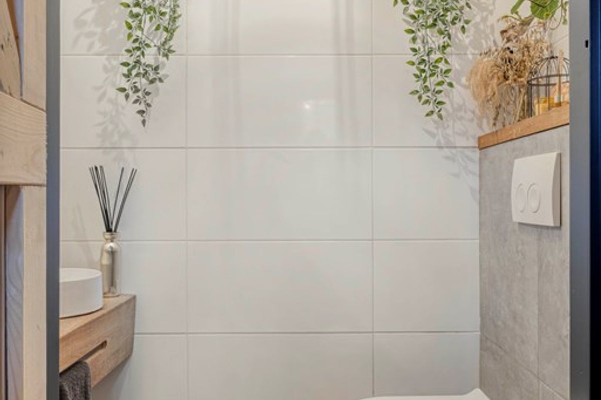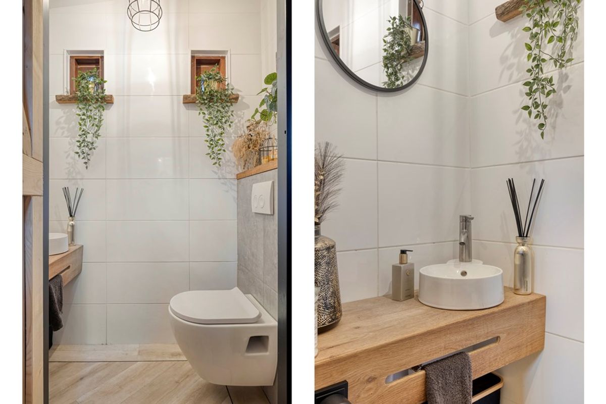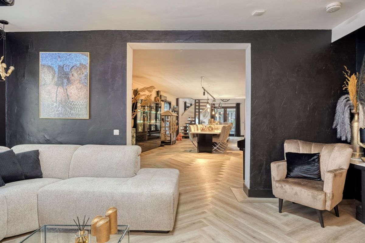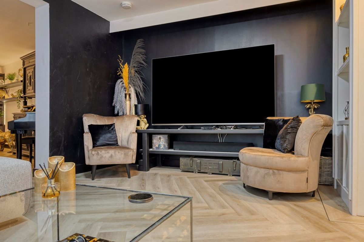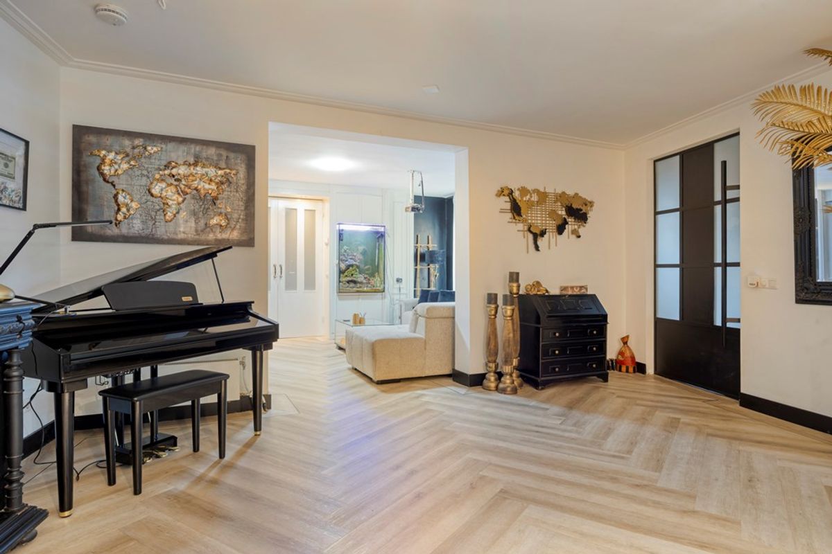 • Keuken: Door de aanbouw is er echt een geweldige leefkeuken ontstaan. De ruimte is maar liefst 13,3 meter diep en is voorzien van een airco voor verwarmen en koelen van deze ruimte. In 2025 is een complete en moderne keuken geplaatst, voorzien van een kookeiland met inductiekookplaat met geïntegreerde afzuiging en een oven van maar liefst 90 cm breed. In de hoge kastenwand zit een wijnklimaatkast, ingebouwd koffiezetapparaat, combi-oven en vrijstaande Amerikaanse koel-vries combinatie. Aan de achterzijde zijn 2 maal dubbele tuindeuren geplaatst welke toegang geven tot de achtertuin en de overkapping. Vanuit de keuken is ook de zij-entree toegankelijk waar een toiletruimte en de garderobe is.