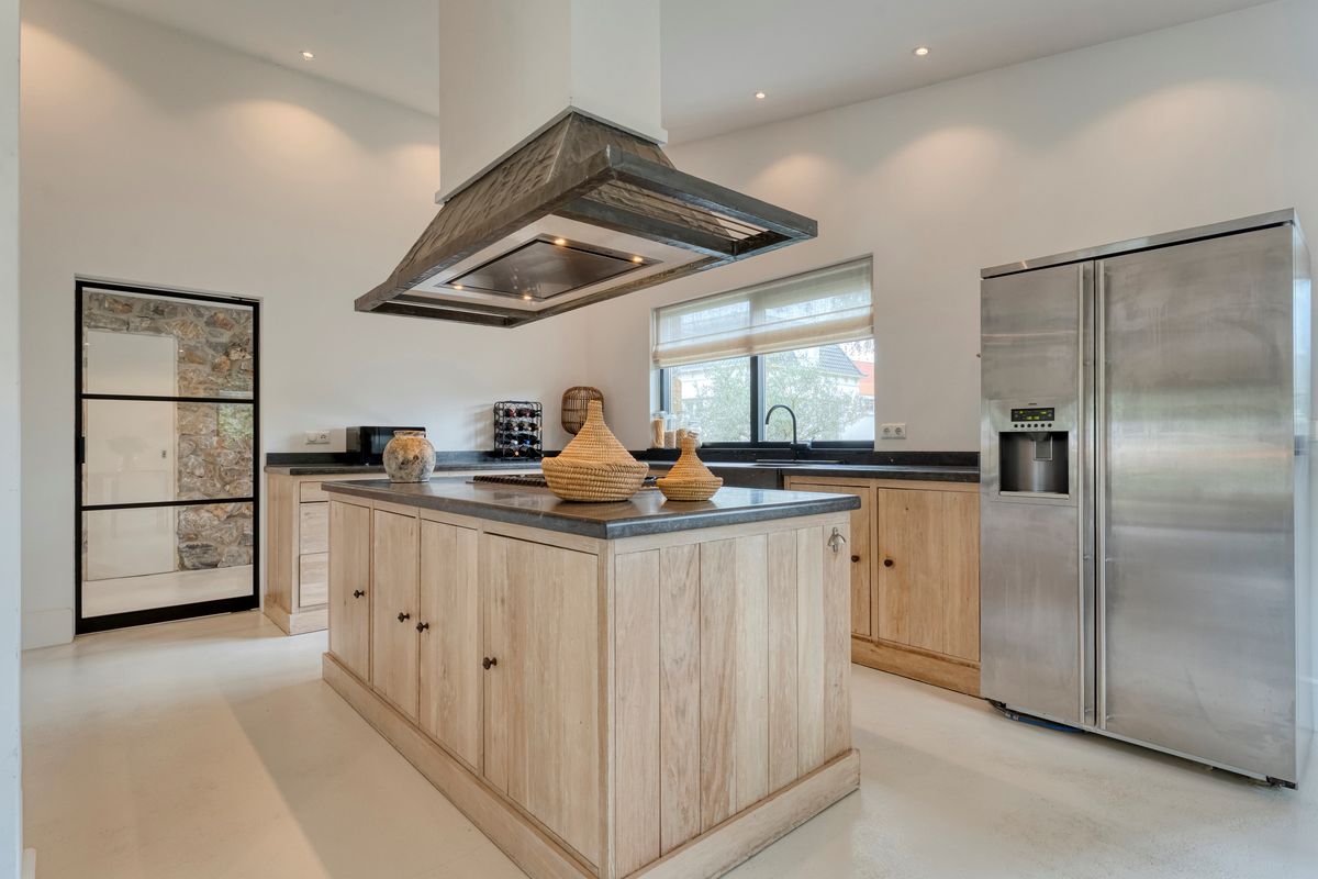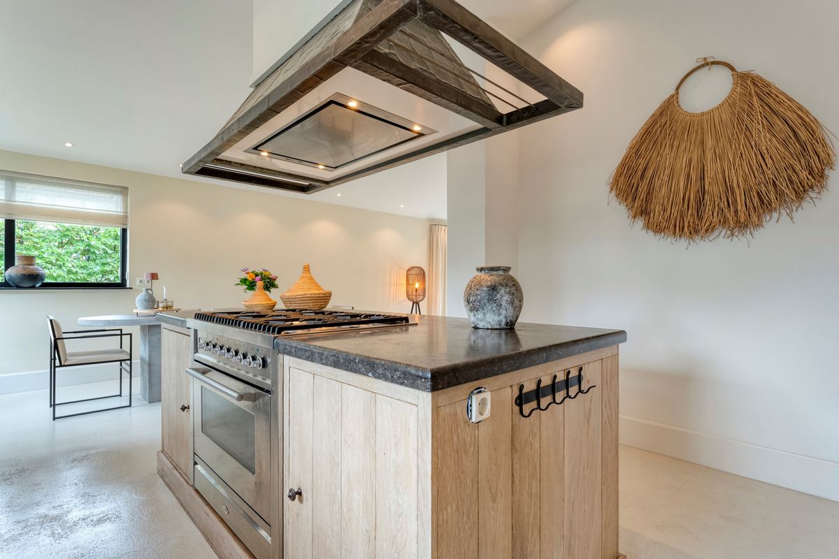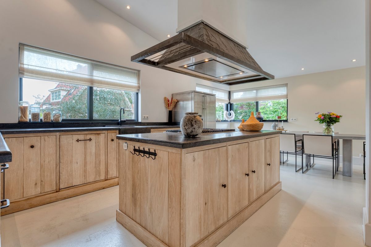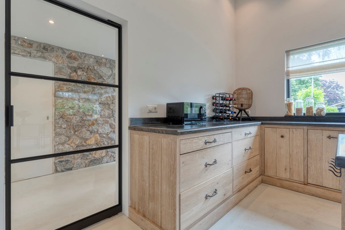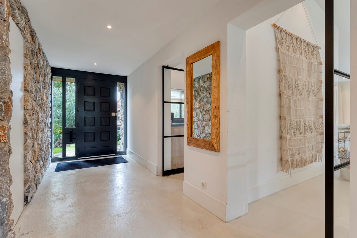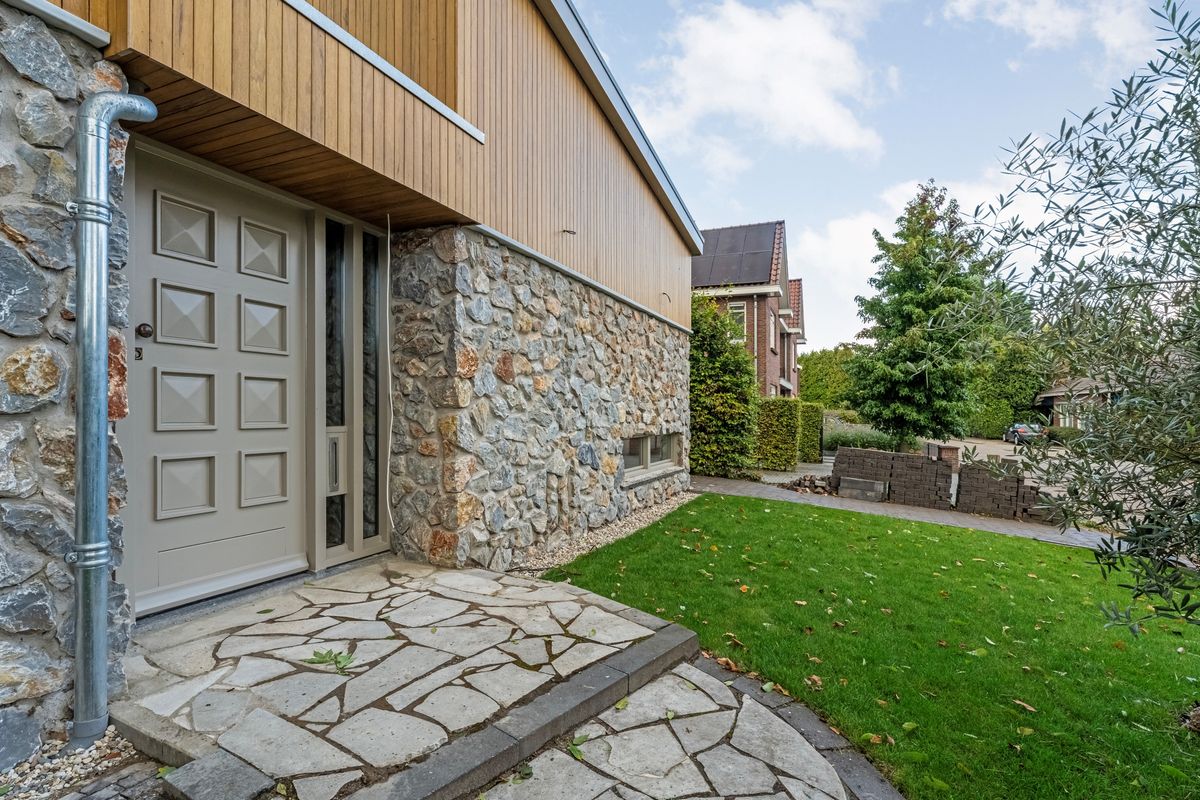 Recent zijn ook de gevels rondom de woning aangepakt met natuursteen en tropisch hardhout als afwerking.