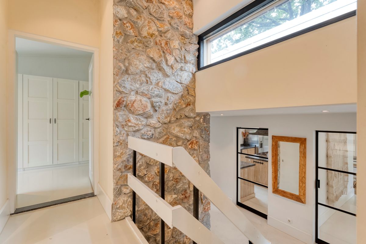 Via de trap bereik je de eerste verdieping, waar zich drie slaapkamers bevinden. De masterbedroom is voorzien van airconditioning en biedt toegang tot een heerlijk terras. De moderne badkamer (2020) is uitgerust met een ruime inloopdouche, vloerverwarming en een dubbele wastafel. Op de overloop vind je bovendien een apart toilet met vloerverwarming.