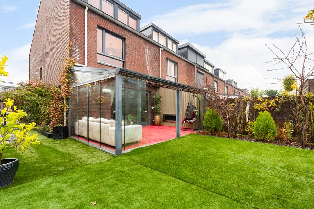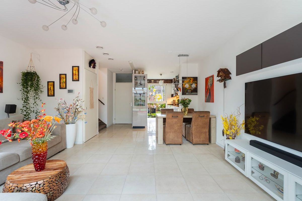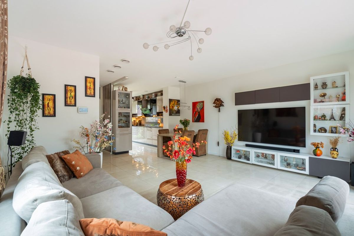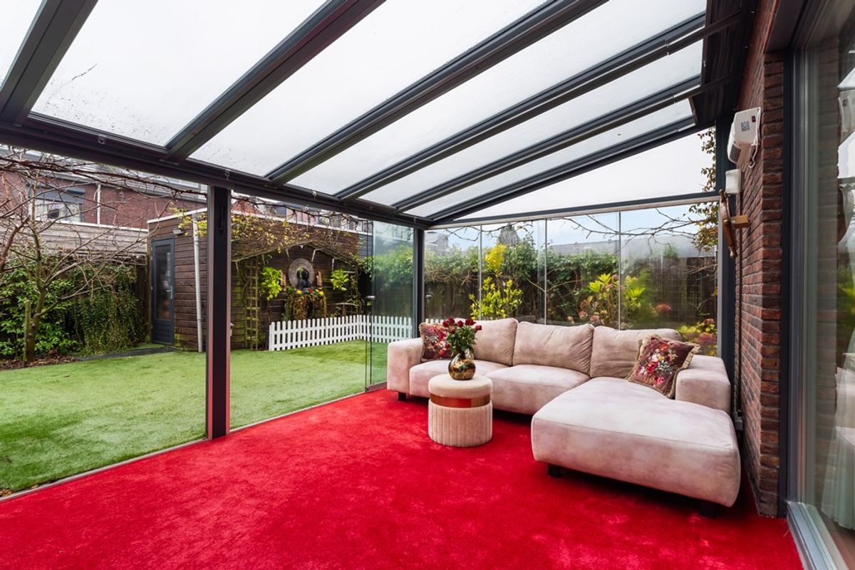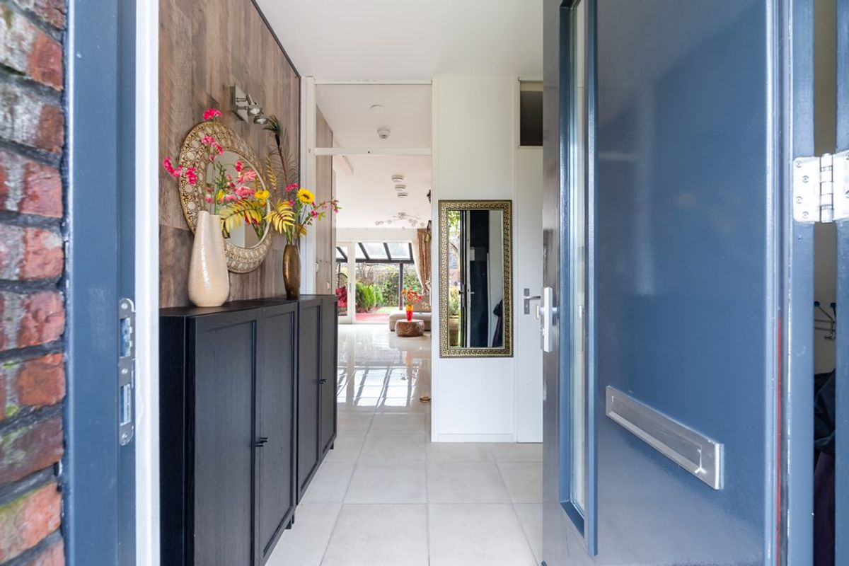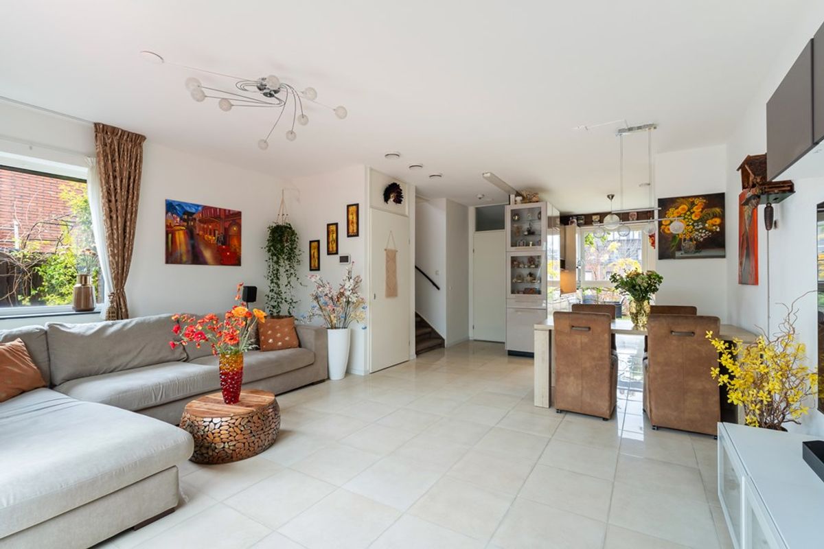 De woonkamer is tuingericht en extra licht door het zijraam, met een prachtige tegelvloer, vloerverwarming en openslaande deuren naar de ruime serre van maar liefst 19 m². In de serre kun je het hele jaar door genieten dankzij de schuifdeuren, een bio-ethanol open haard, een infraroodpaneel en een zonnescherm – ideaal voor alle seizoenen.