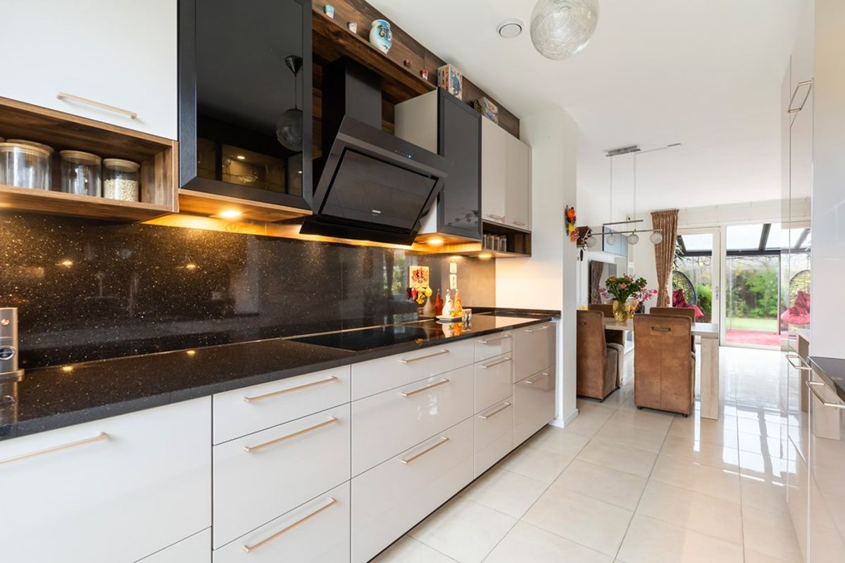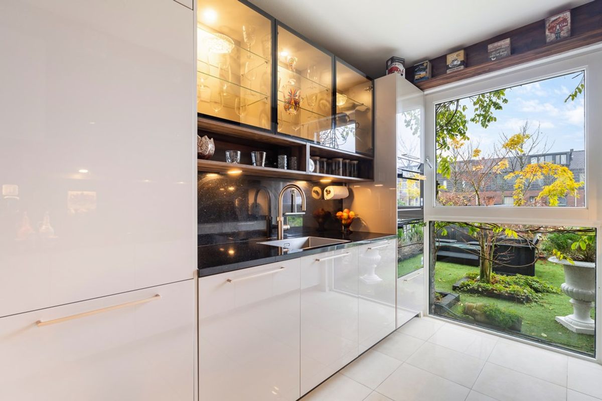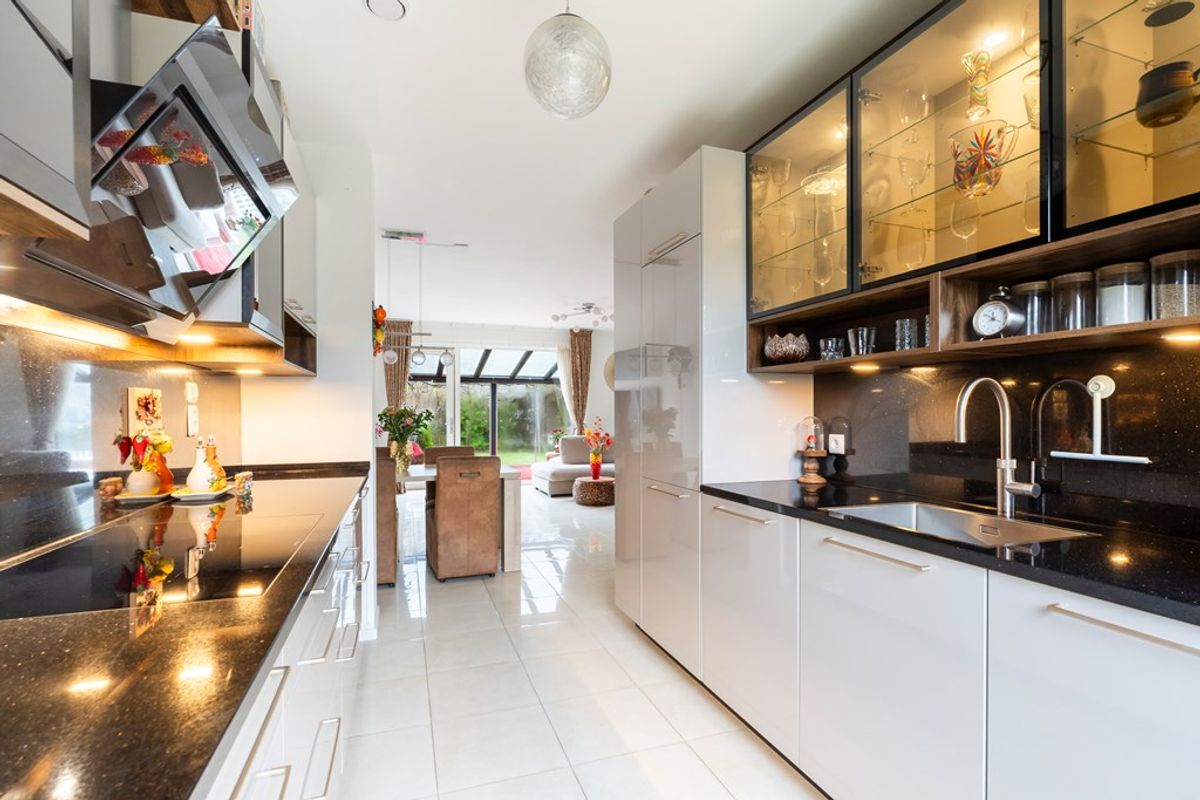 De keuken aan de voorzijde is in 2024 volledig vernieuwd en voorzien van een luxe granieten werkblad en hoogwaardige Siemens inbouwapparatuur. Alles is aanwezig: een flexibele inductieplaat, quooker, combi-oven, extra oven, koelkast, vaatwasser, stijlvolle vitrinekasten en volop opbergruimte. Het geheel straalt klasse uit en vormt het perfecte hart van het huis voor elke kookliefhebber.