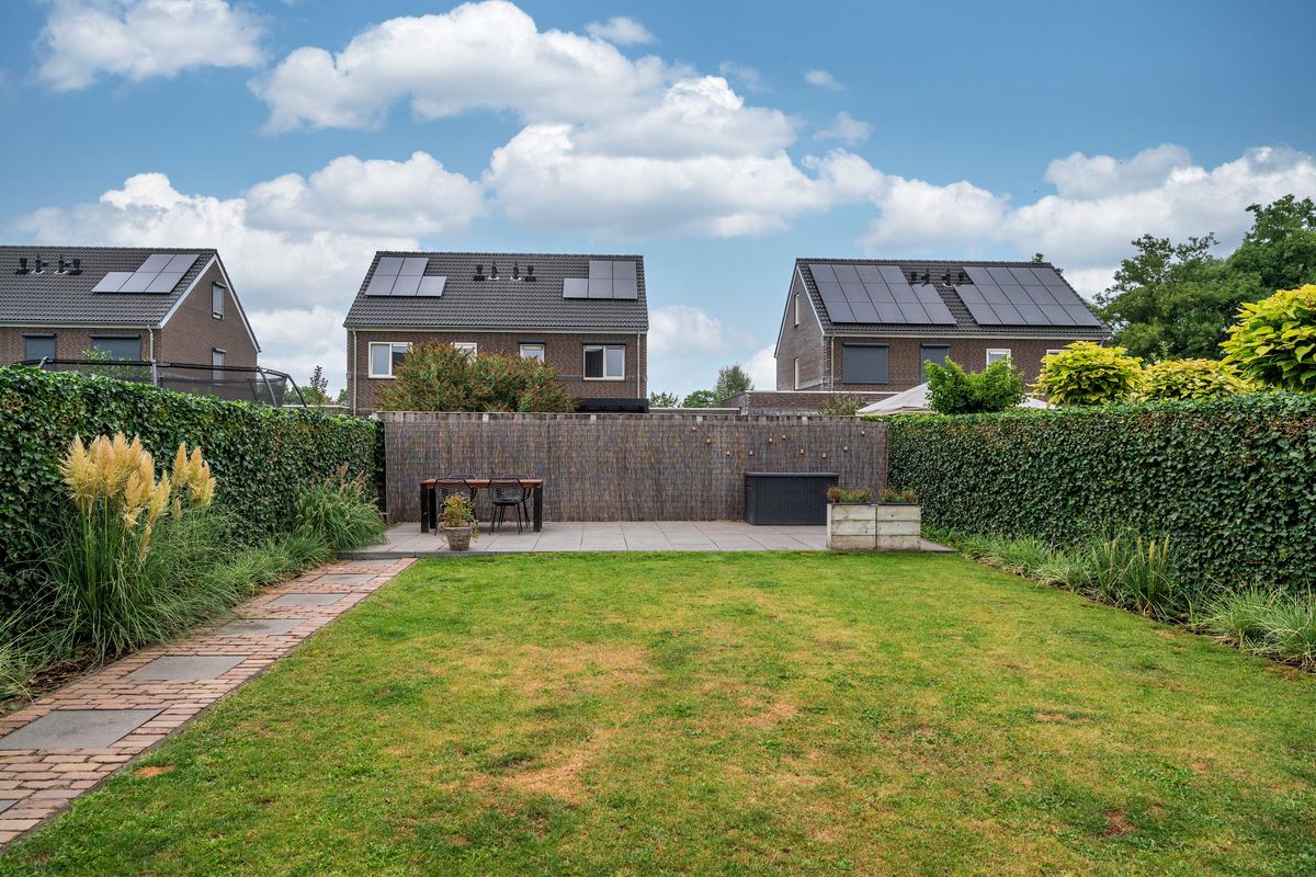 De verzorgde achtertuin, gelegen op het noordwesten, vormt een perfecte verlenging van de leefruimte. Met een diepte van ruim 18 meter, twee ruime terrassen en een groot gazon is er volop plek voor zowel ontspanning als speelruimte. De tuin is volledig omheind en vraagt weinig onderhoud, ideaal voor wie zorgeloos wil genieten van het buitenleven.