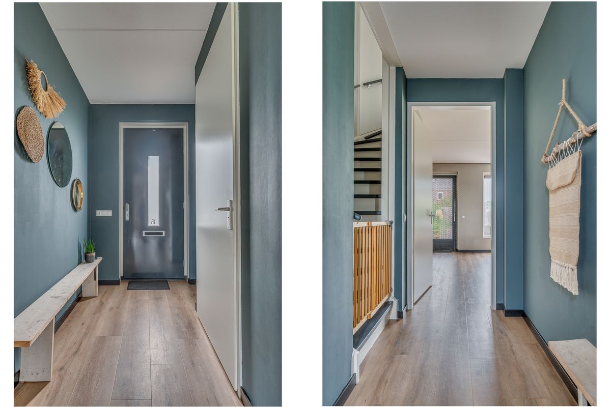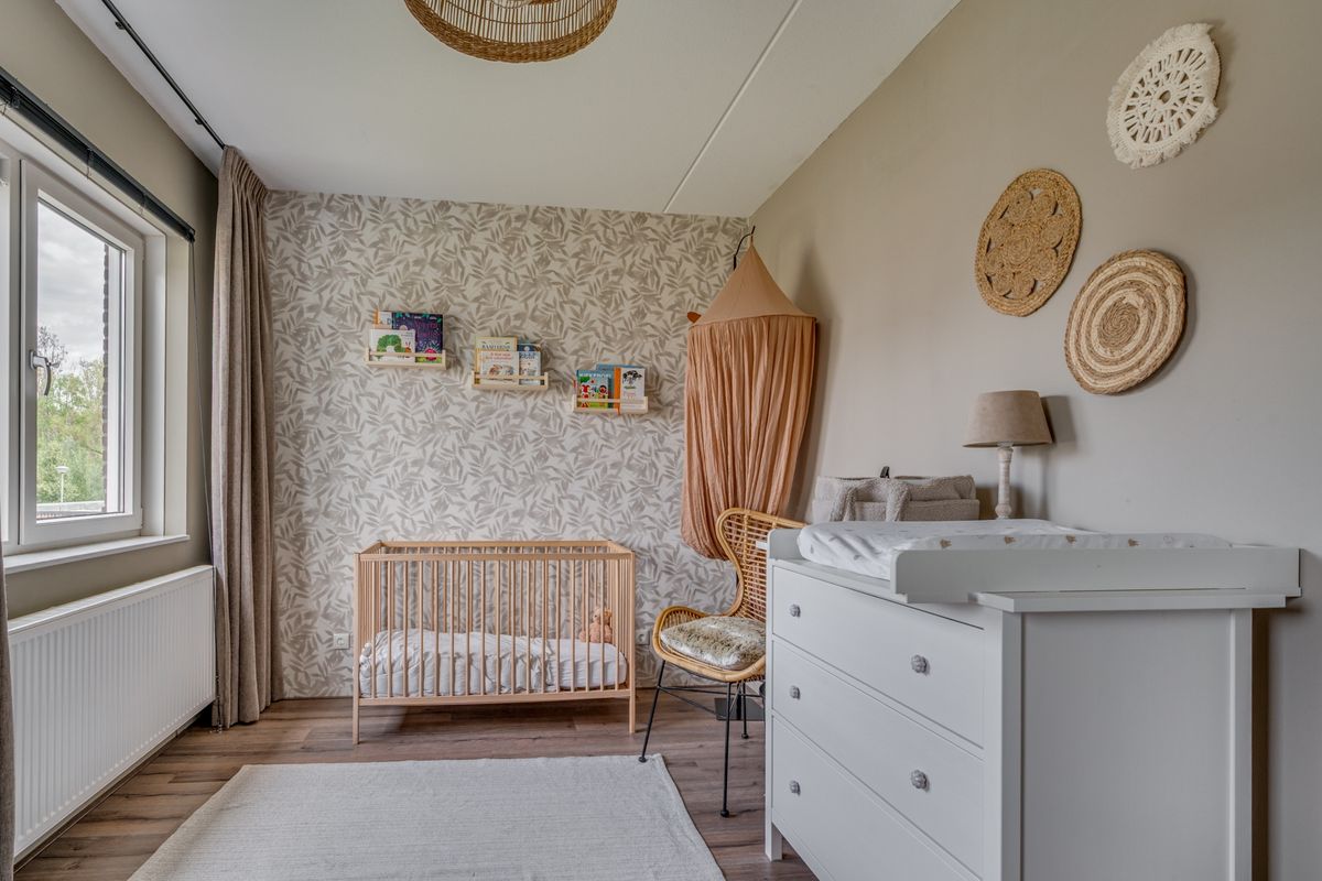 De overloop geeft toegang tot drie keurig afgewerkte slaapkamers en de moderne badkamer. Alle slaapkamers zijn voorzien van een laminaatvloer, nette wandafwerking en uitgevoerd met kunststof kozijnen met HR++ beglazing. De badkamer is volledig betegeld en uitgerust met een ligbad, een aparte inloopdouche, een wastafel en een zwevend toilet, praktisch in gebruik en fris in uitstraling.